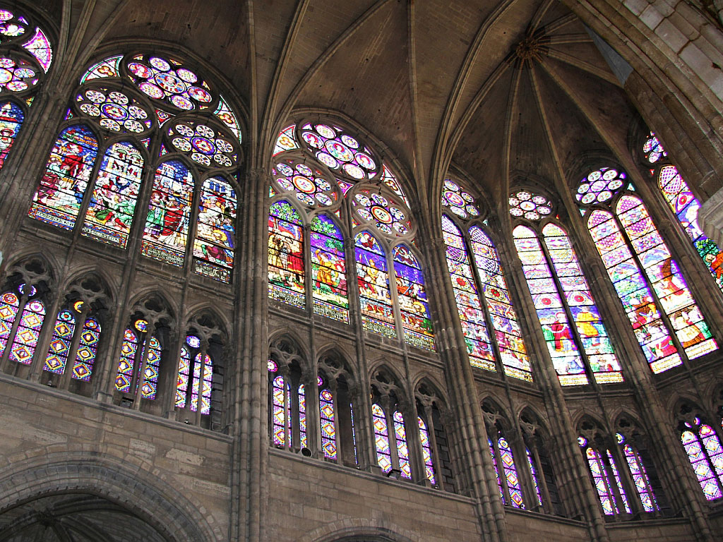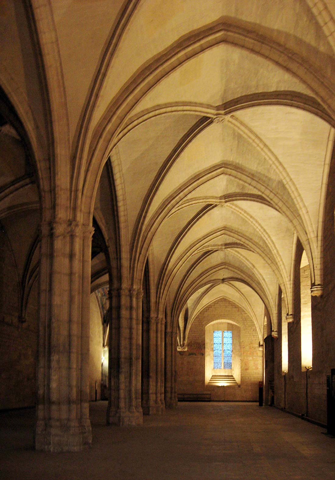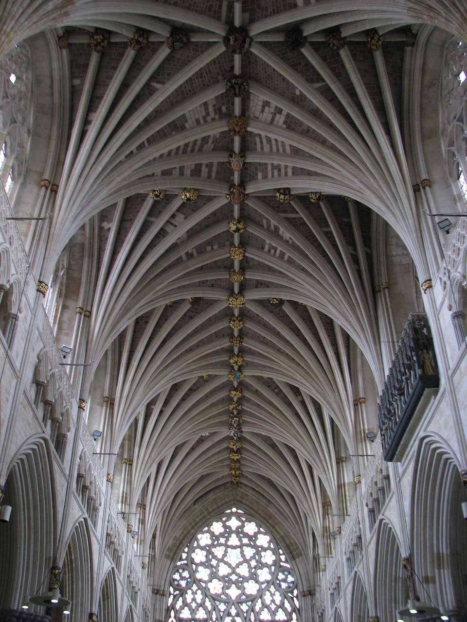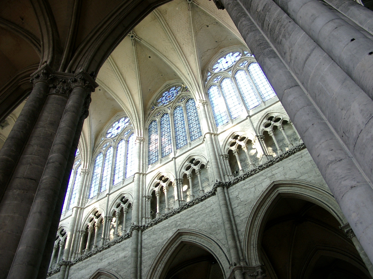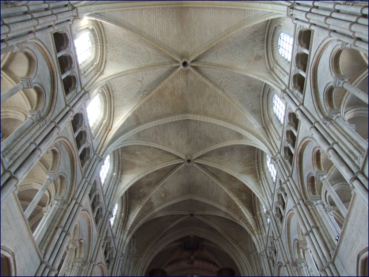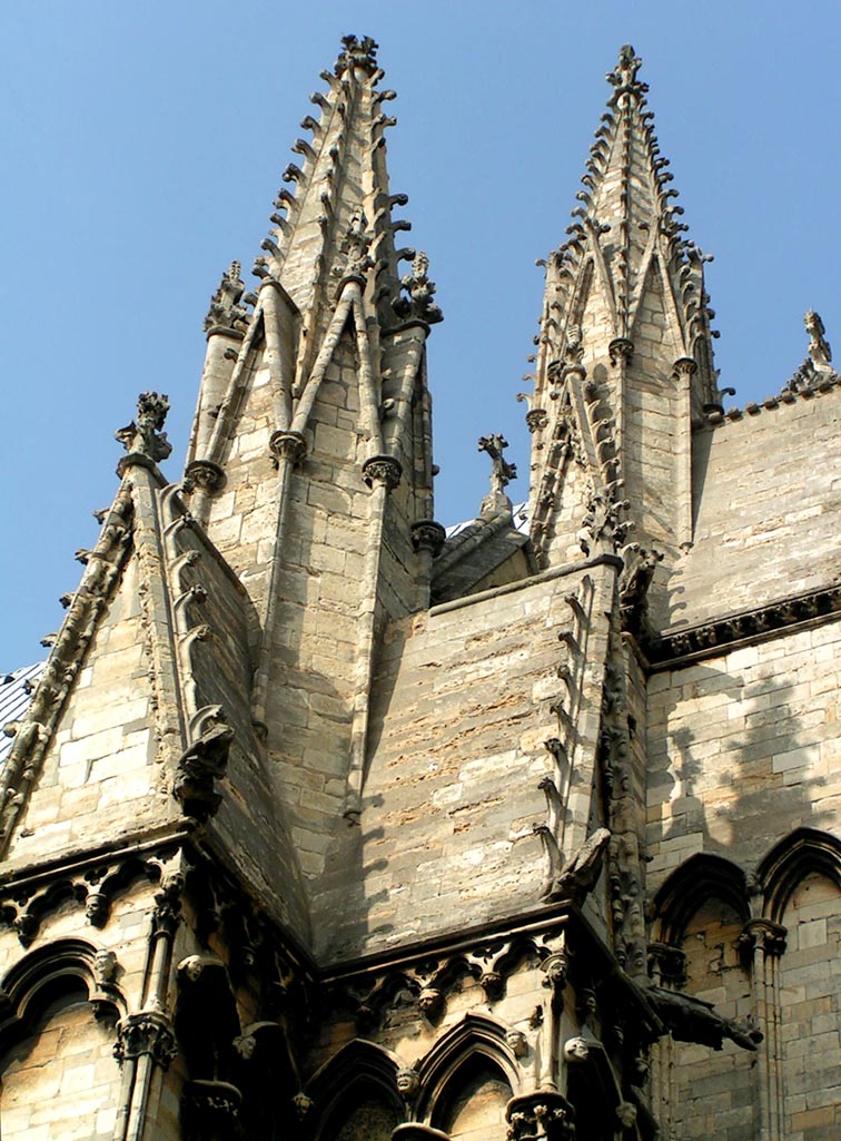 Нервюры – ребра, каркас; распалубки, соединяющие их, – это паруса. Сначала нервюры были простыми – крест-накрест. Со временем переплетение нервюр становилось все сложнее, они были организованы по-разному в каждом соборе. Британцы любили пучки нервюр, во Франции их переплетения нередко были похожи на паутину.