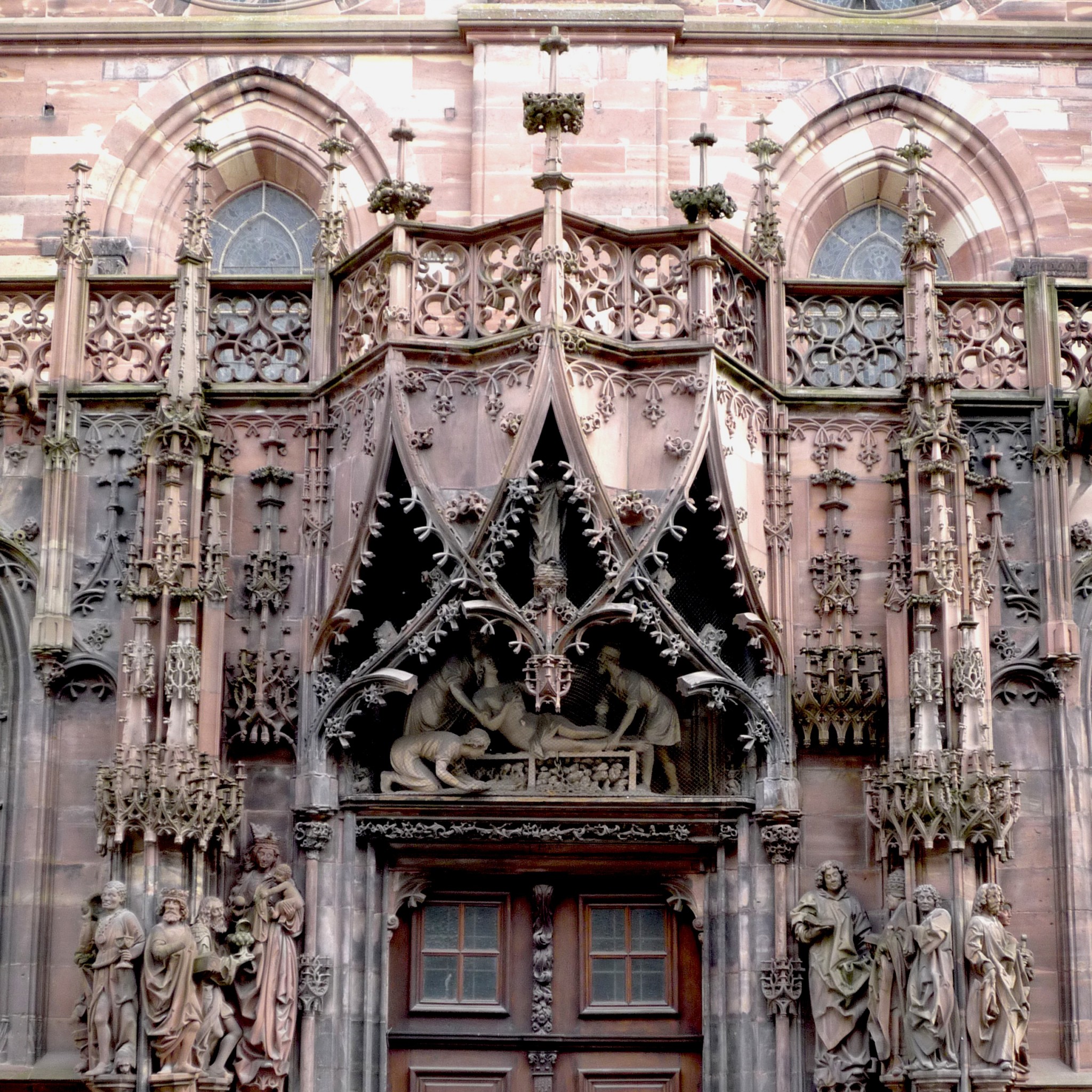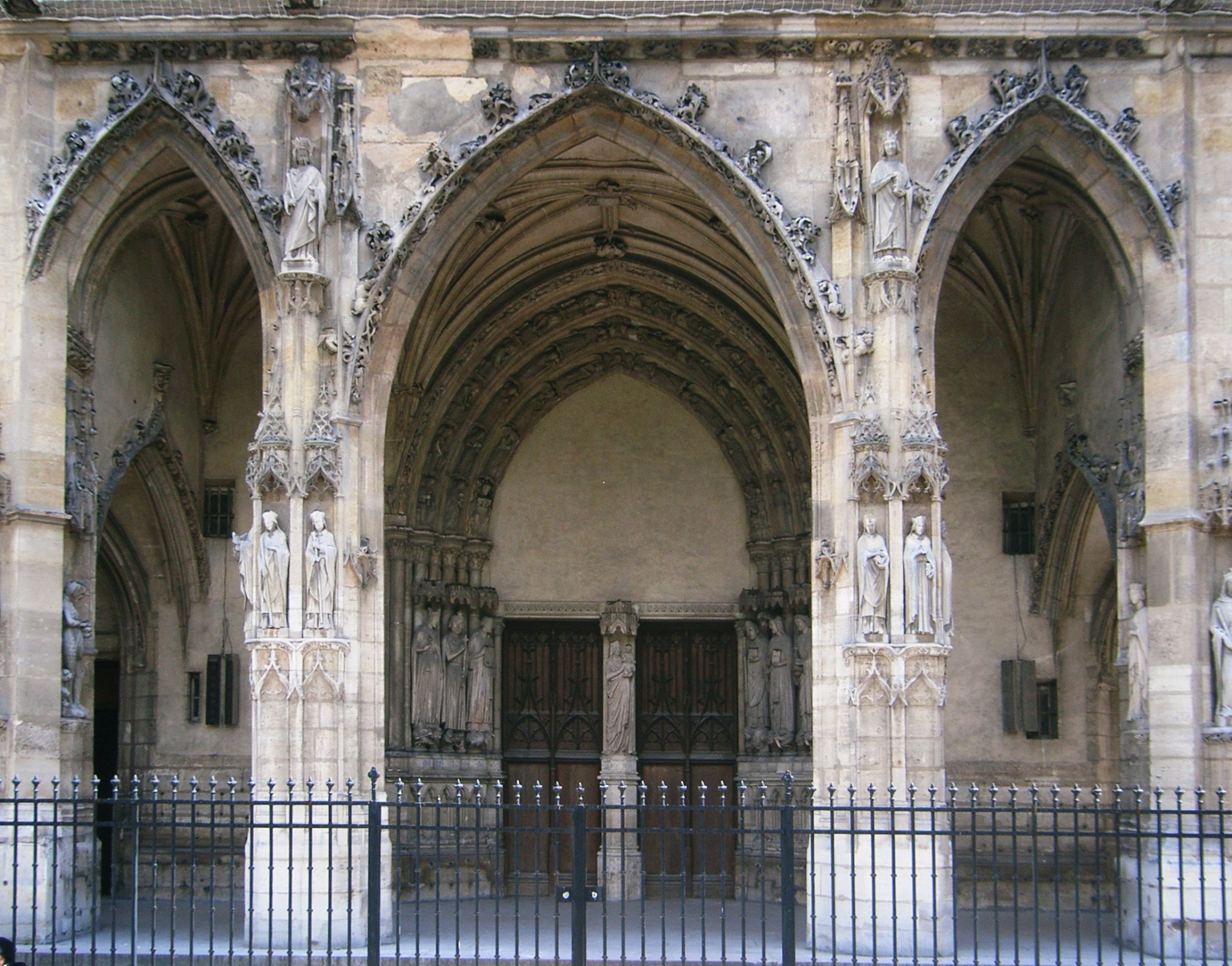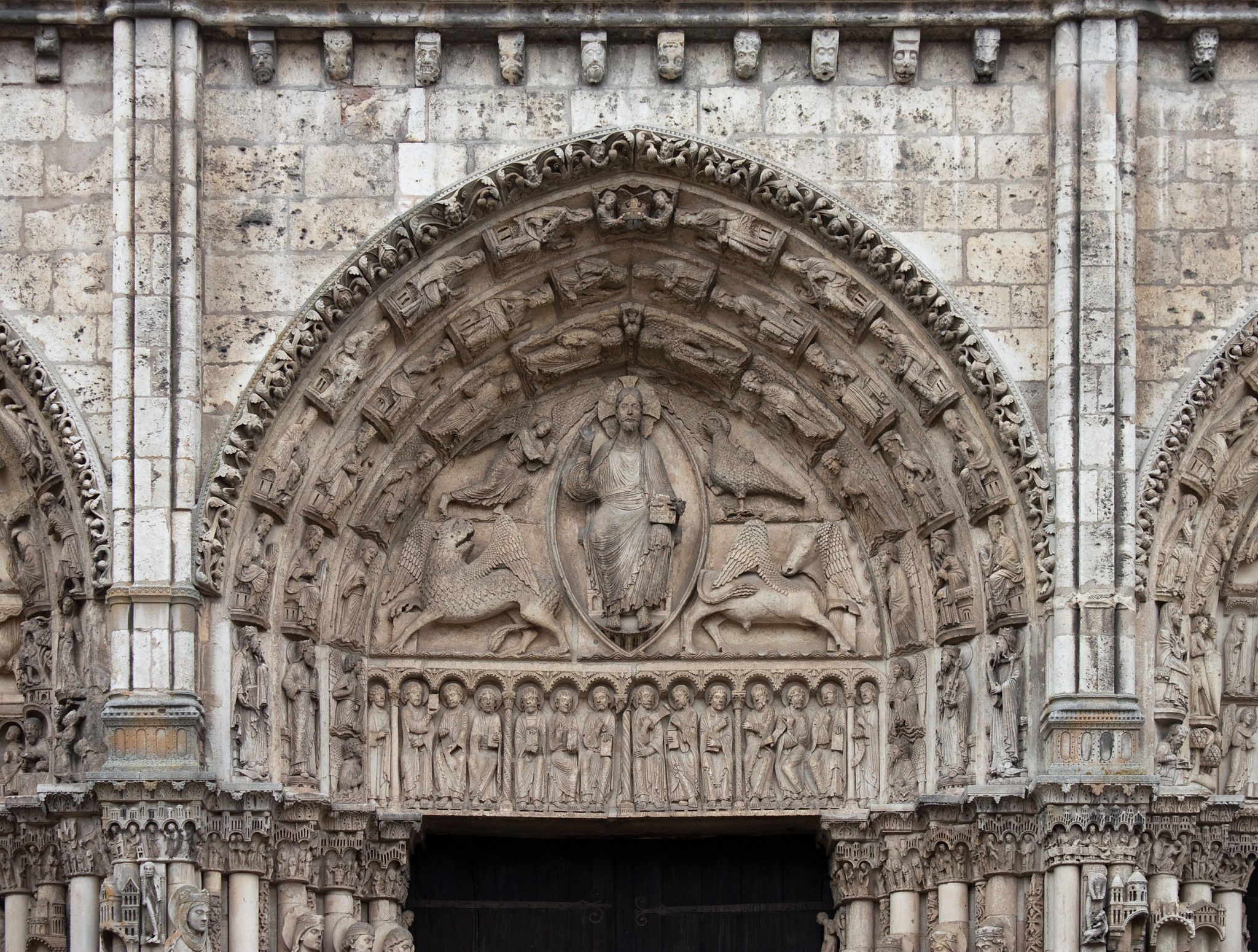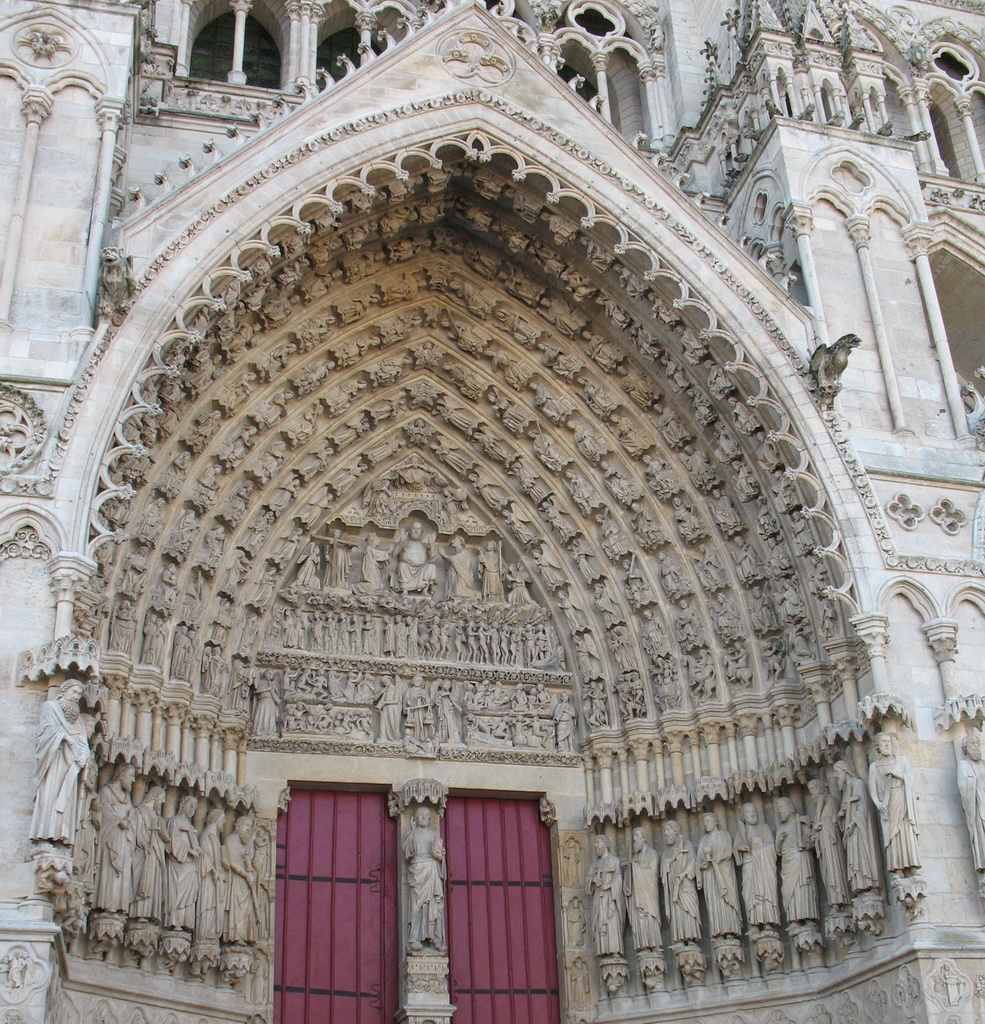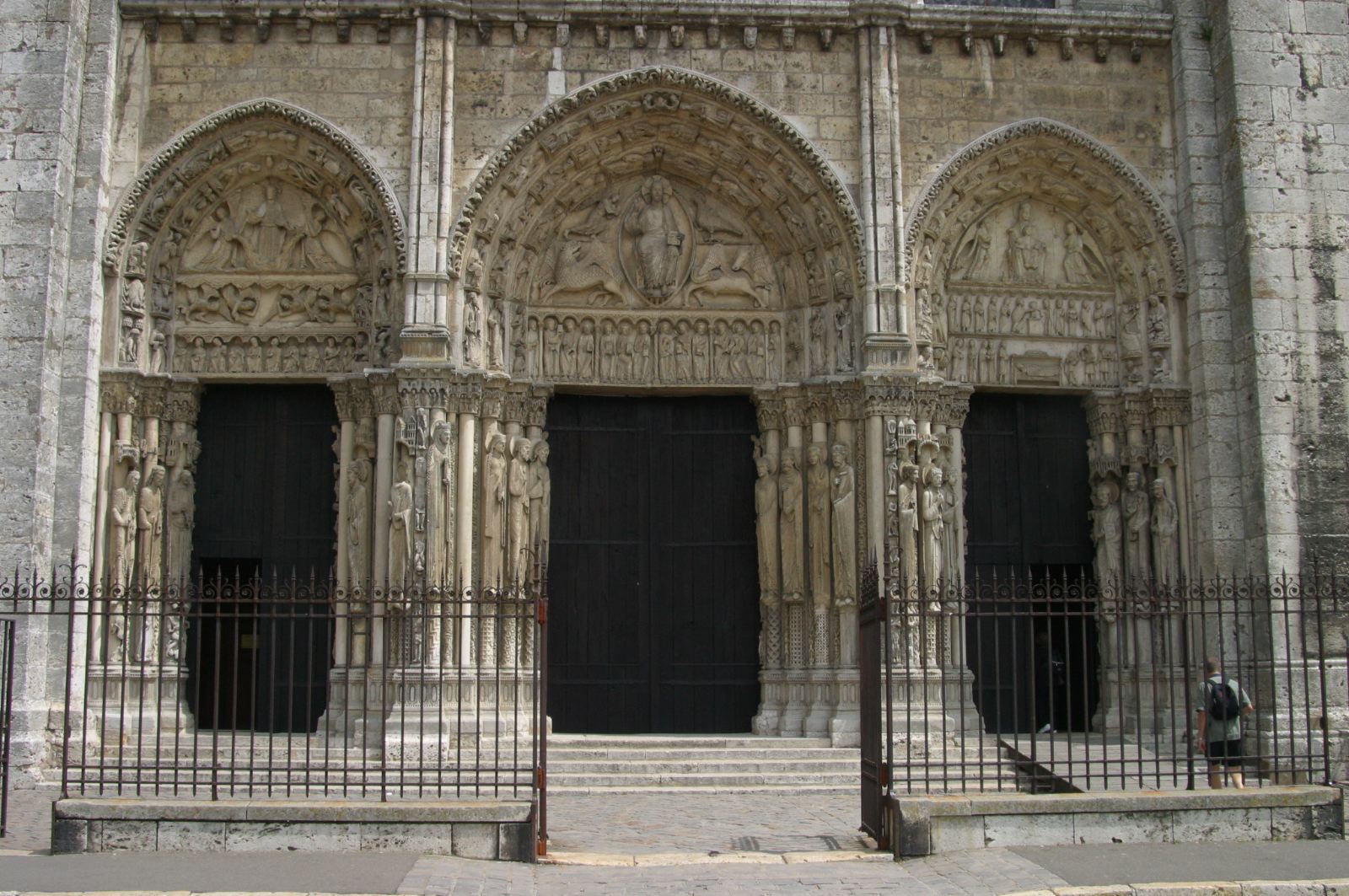 Портал. Про архивольты с вимпергом читали? Вот все это вместе с дверями, тимпаном (о нем речь чуть позже) и еще целой кучей архитектурных излишеств составляло портал. Одна из самых эффектных и ярких частей наружного декора готического собора. Нередко на одном фасаде красовались сразу три роскошных портала, как, например, в Соборе Парижской Богоматери или в Шартрском соборе.