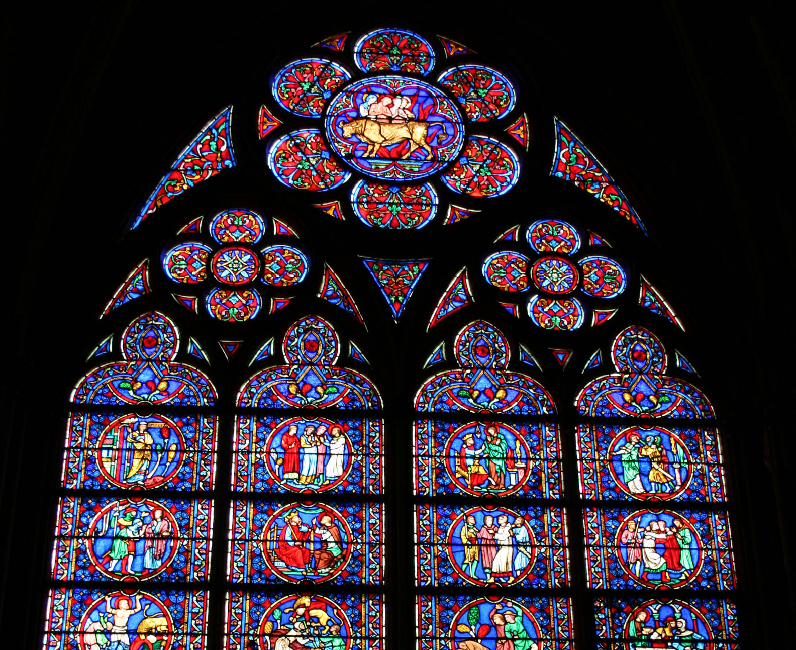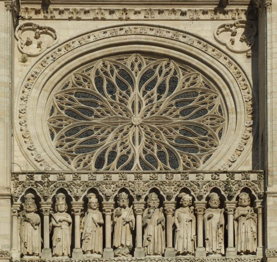 Роза. Тут все просто – круглое готическое окно. Каждый уважающий себя собор имел розу. В кружевные промежутки вставляли цветные стекла, через которые внутрь храма проникали разноцветные лучи света, и настоящие розы завидовали этой красоте!
