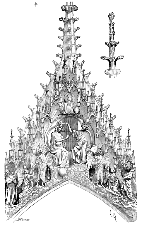 Вимперг. Красивая штучка – конический щипец, остроугольный треугольник над порталом или окном, часто украшенный лепниной. Такой можно видеть, к примеру, над западным фасадом Нотр-Дам де Пари и над порталами Буржского собора.