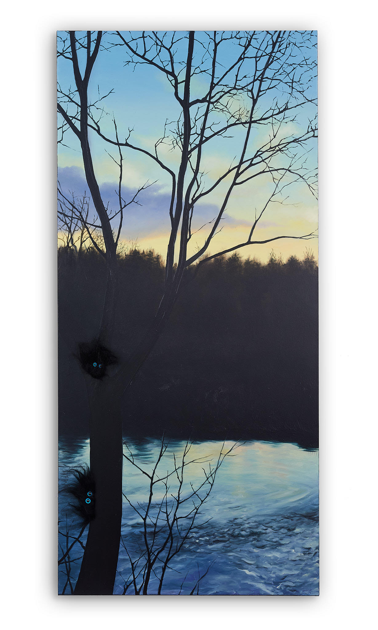Она же является и драматургическим решением экспозиции. Прямо от полотна, как от былинного камня, ведут три дороги в три разных зала. Тематика каждого помещения посвящена одной из природных зон, часто фигурирующих в сказках – лес, водная стихия и подземный мир. Но если вход в первый и второй зал был свободным, то третью дорогу закрывали ленточные столбики. Сначала я подумал, налево пойдешь – в подводное царство попадешь, прямо пойдешь – в волшебный лес зайдешь, а в подземелье санобработка, но нет, в него ведут окольные тропинки из двух других залов. Видимо, причины такой меры были.