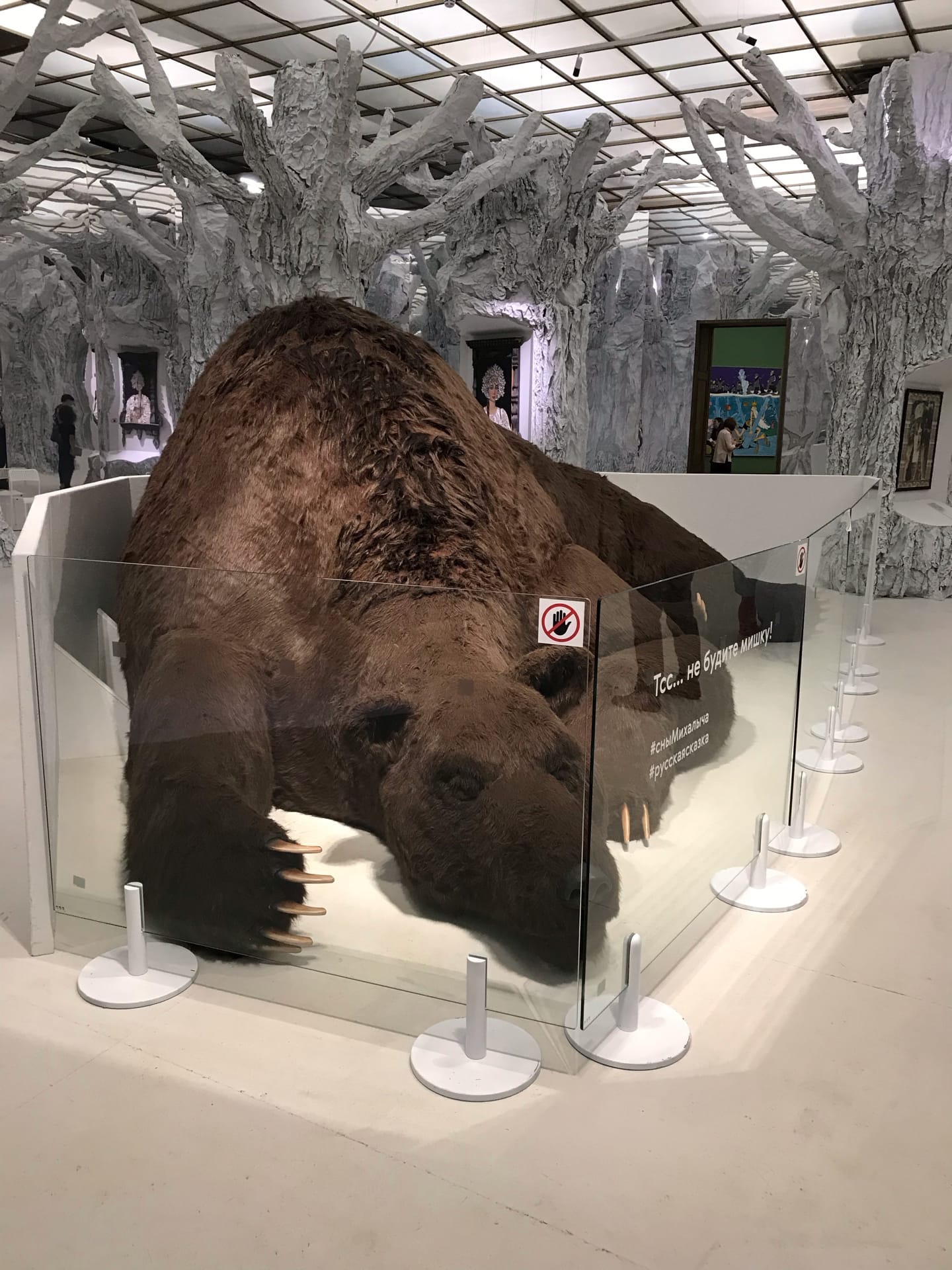 Другая же причина работает на воображение. Если начать с подводного царства, а закончить лесом, символически получается проход через тьму к свету. Как будто, пообщавшись со всей магической нечистью, вы выходите на освещенную солнцем полянку с добрым, хотя и спящим, мишкой. Здесь же располагается один из самых знаковых живописных шедевров – картина Виктора Васнецова «Иван Царевич на Сером Волке». Для меня она один из якорьков в детство. Помню, такая висела около печки в моем деревенском доме.
