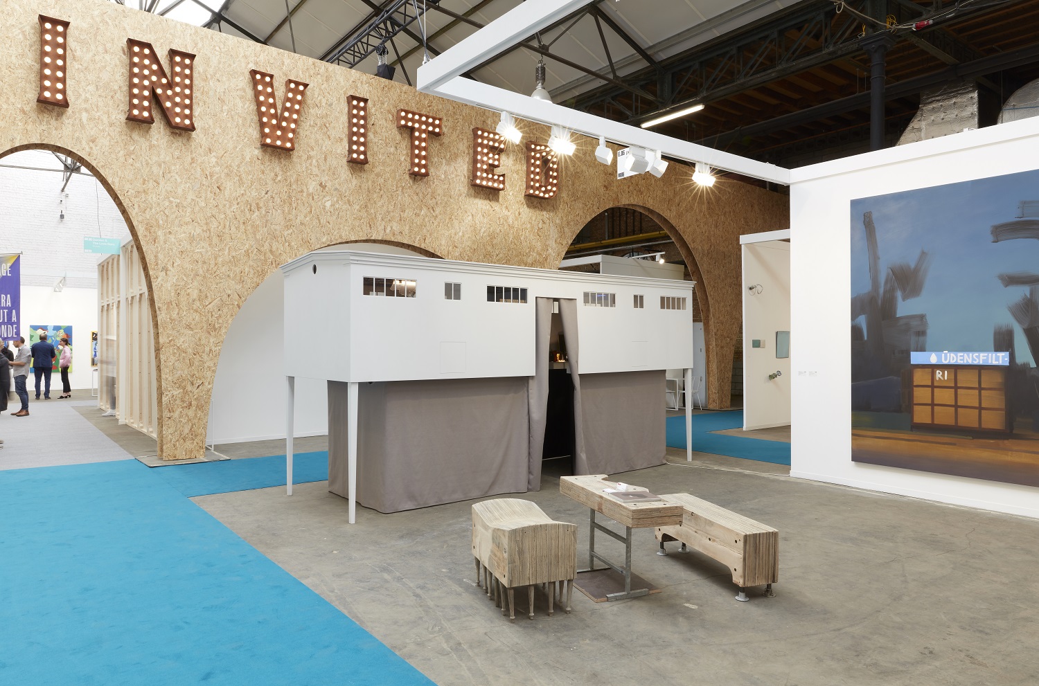 Без внимания мы никак не могли оставить стенд московской галереи Pop/off/art, на котором был представлен персональный проект латвийского художника Андриса Эглитиса из двух серий произведений «RNP2VS» и «Reflections (The Illuminated and the Enlightened)». Художник воссоздал уменьшенную копию своей мастерской, располагавшейся на территории бывшего заводского цеха. Он превратил ее в интерактивную инсталляцию, внутрь которой зритель мог зайти и увидеть экспозицию из картин небольшого формата, подобную той, что была представлена на Рижской биеннале (RIBOCA): в прошлом году мастерская Эглитиса стала одним из мест её проведения. Помимо работ, созданных художником для биеннале, были представлены и совершенно новые крупные живописные холсты, сделанные специально для Art Brussels. Концепция экспозиции может быть прочитана через множество аллюзий, так или иначе связанных с идеей света: это и знаменитая аллегория пещеры Платона, и новозаветный Фаворский свет. Эглитис стремится с разных сторон рассмотреть такое удивительное явление, как свет, и переосмыслить его роль не только в истории культуры, но и в языке. Само слово «reflection» в названии — как рефлексия, так и отражение — открывает возможности более широкого прочтения экспозиции и заложенных в нее смыслов. И однако, сам художник аккуратен в трактовках, цитируя эссе Сьюзан Сонтаг «Против интерпретации»: «Отныне и до конца сознательной жизни, мы застряли с задачей защиты искусства» (ориг. «From now to the end of consciousness, we are stuck with the task of defending art»).