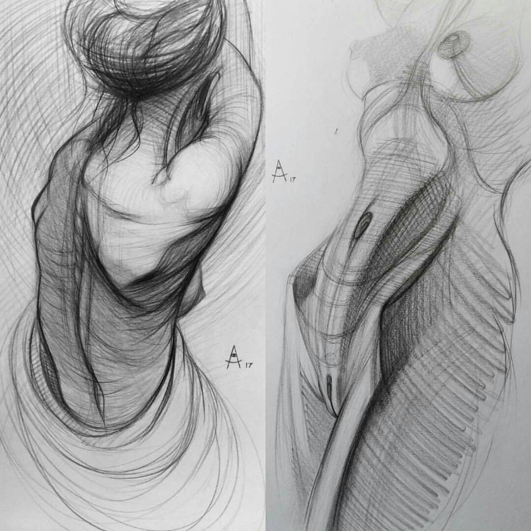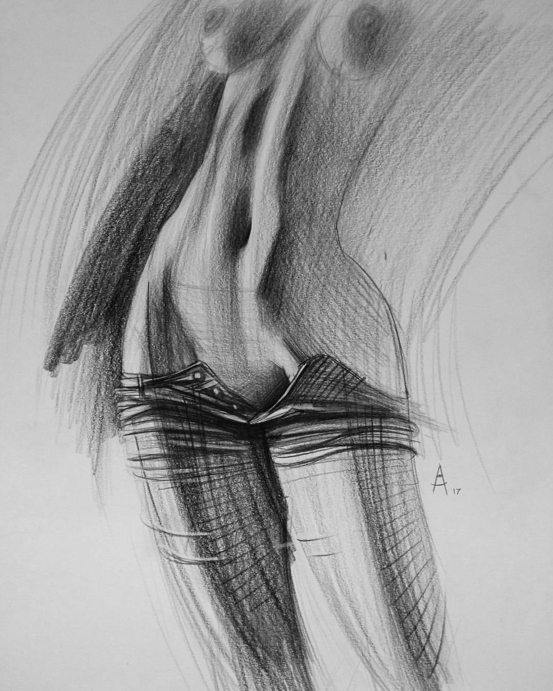 Я рисую женское тело таким, каким его вижу, и каким оно мне нравится. Исследую его пластику своими методами и приёмами. Образ женского тела я не могу отделить от ощущений в своём восприятии и всегда стараюсь передать с помощью линий именно ощущения.
