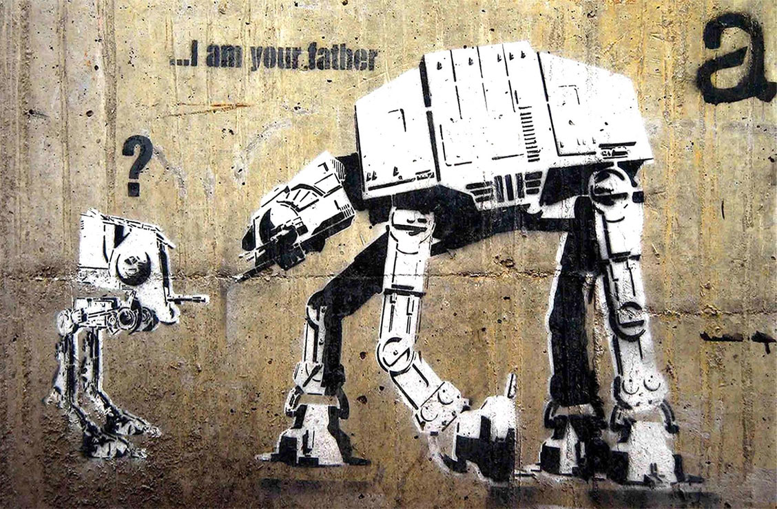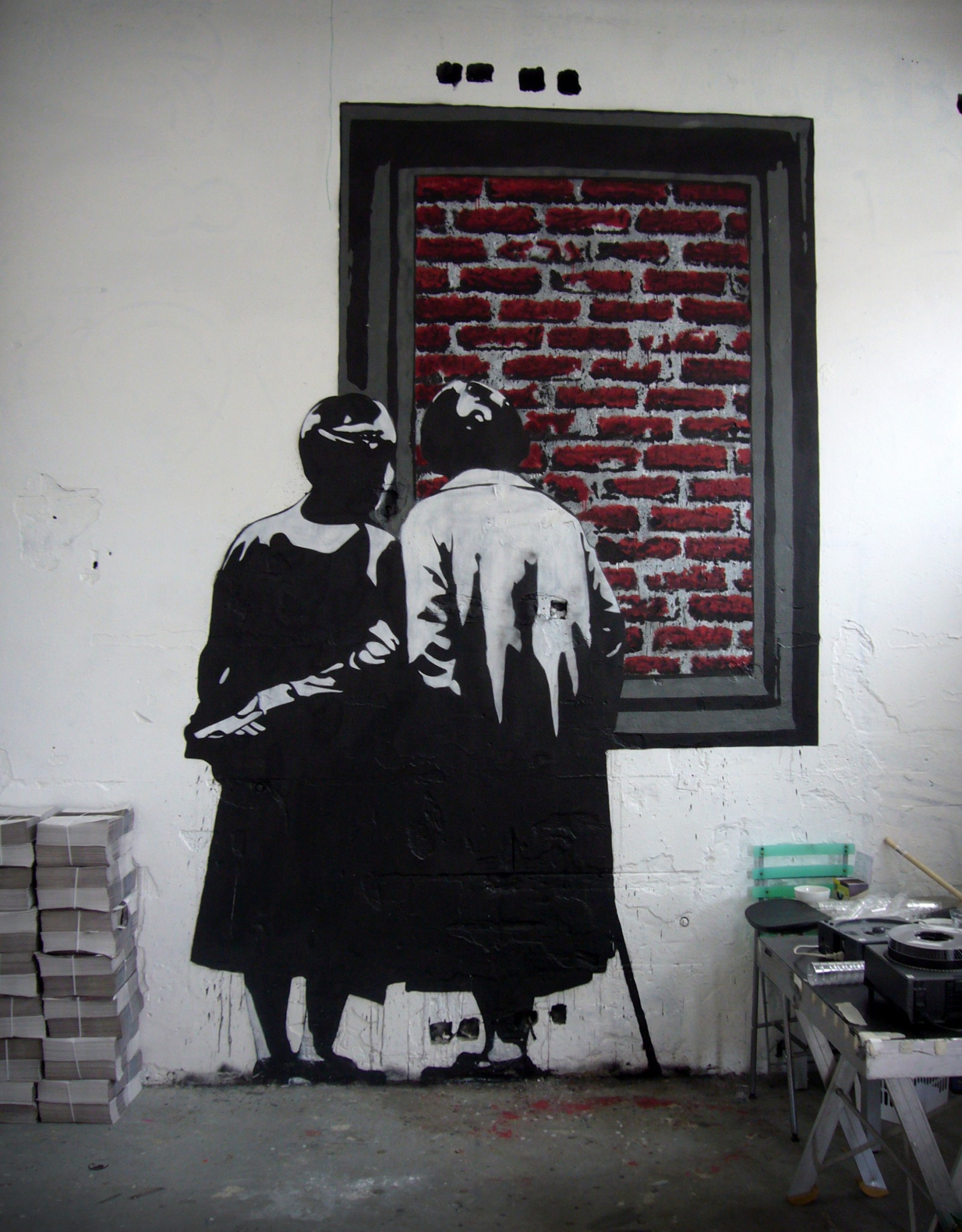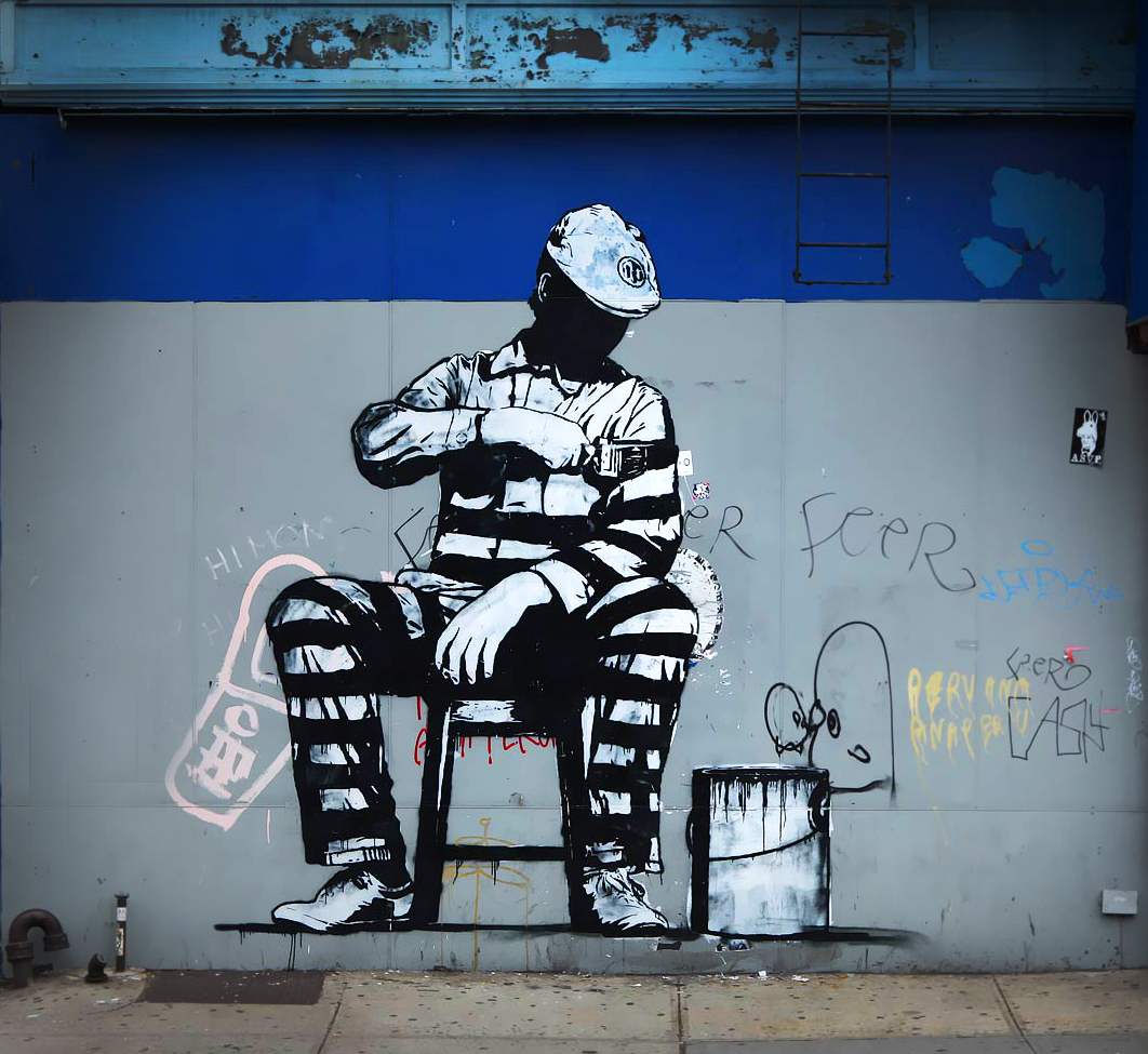 Только после всего этого Долк вырезает скальпелем из картона трафарет. Знаете, сколько занимает у него одно только вырезание? Около десяти часов! С готовым трафаретом он выходит в ночь и держит путь к понравившейся стене. Если всё идёт гладко, картинка готова в течение минуты. А на следующий день автор вместе с толпой людей фотографирует своё произведение, прикинувшись обычным прохожим.