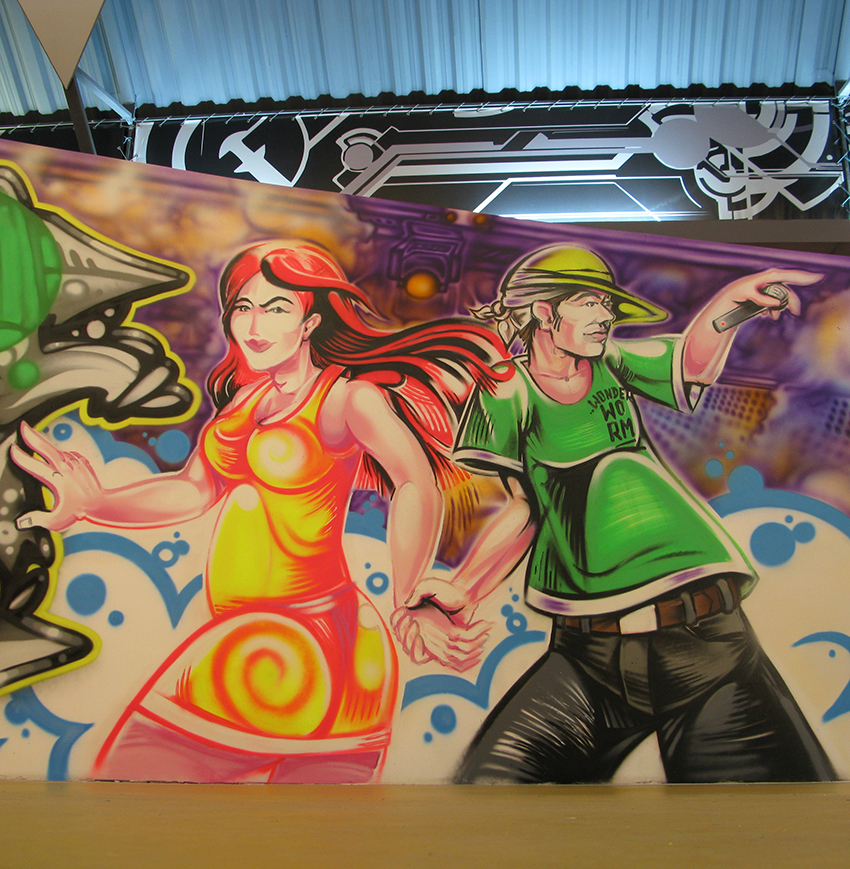 Но что меня удивило больше всего, это то, что в этом сообществе людей ниша граффити практически не была занята. Было всего несколько человек, которых можно было пересчитать по пальцам и в основном это были такие же брейк-танцоры, которые параллельно с танцами увлекались ещё и рисованием. Большинству это было не так интересно, как танцы и музыка. Граффити в основном интересовало всех в качестве декораций на заднем плане в клипах или на сцене во время выступлений. Иногда этим первопроходцам граффити движения удавалось оформить клуб или магазин соответствующей тематики. Но всё-таки большинство из них делало «ставку» на карьеру эстрадных артистов – танцоров и певцов. Благодаря этому мы получили такие группы на отечественной сцене как «Кар-Мэн», «Мальчишник», «D.M.J.», «Bad Balance» и «Jam Style & Da Boogie Crew». По сути, это были первые популярные рэп группы в нашей стране.