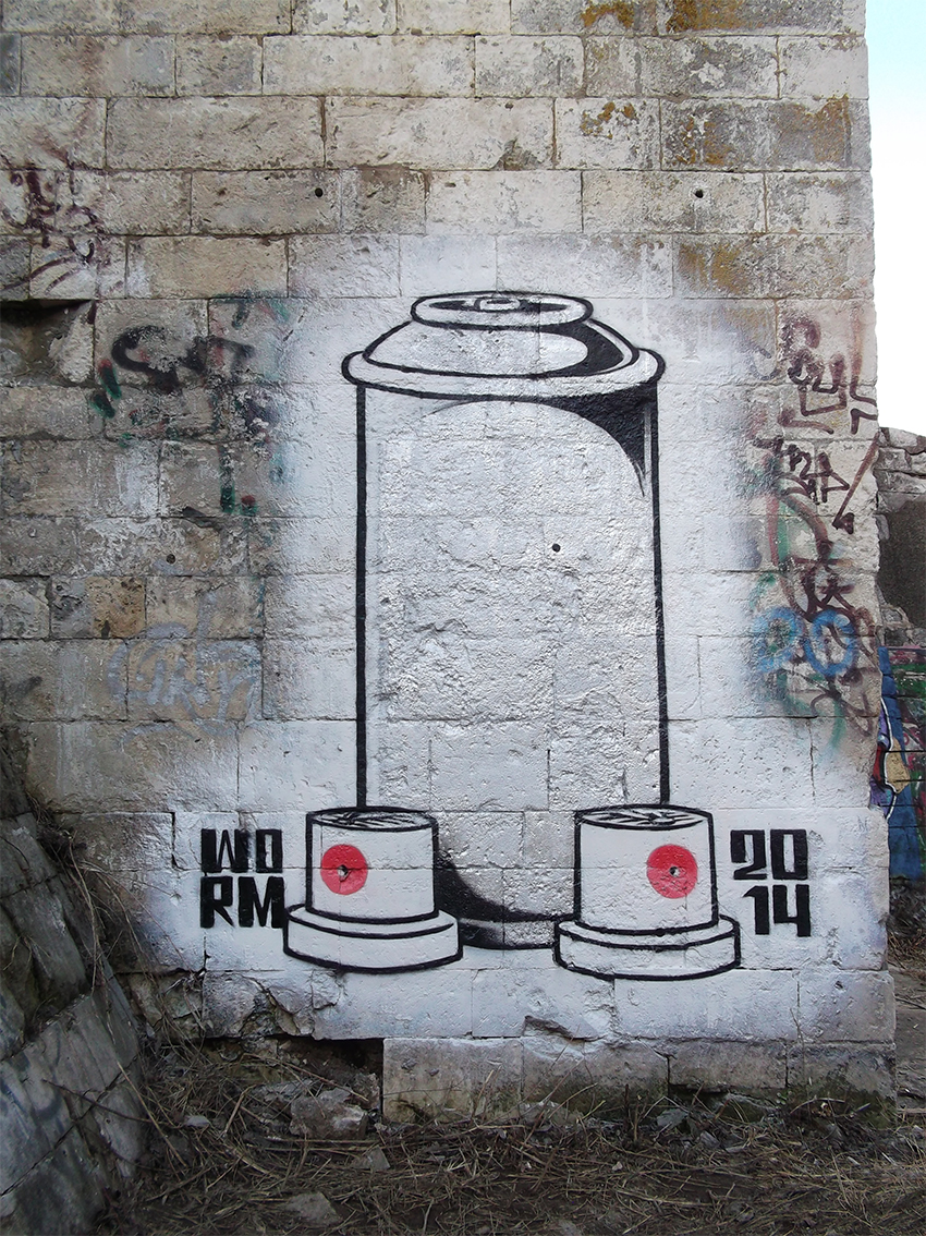 С годами я понял, что сходство не только внешнее. Есть такие люди, которым прозвища дали, a есть такие, кто сам себе их придумали. Я свой псевдоним придумал сам. Искал, думал, как лучше, потому что в граффити важная составляющая это слова и буквы, из которых они состоят. Как-то я сказал одному своему другу, что мне нравится слово «червяк». А он мне ответил: «Это по-английски «worm», четыре буквы…». Длинные слова не всегда успеваешь написать, когда рисуешь нелегально на улице. На улице нужно было рисовать очень быстро. Тут чем короче – тем лучше. А спустя годы я начал замечать, что в 14 лет я рисовал намного быстрее, чем сейчас. И с каждым годом я рисую на улицах всё медленнее и медленнее, всё меньше и меньше. Поэтому выбор мной моего творческого псевдонима это своего рода кармическая история. ☺