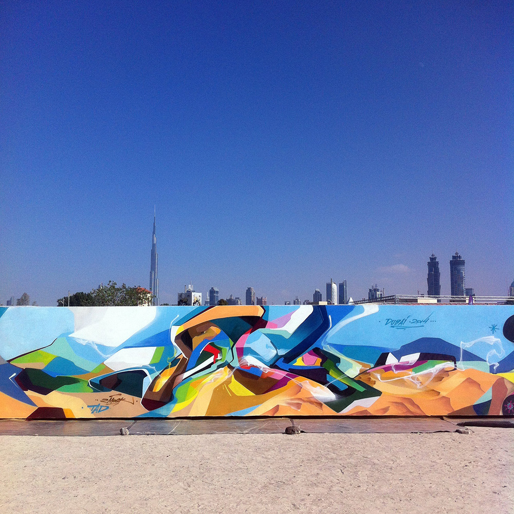 Спасибо. Нынешний стиль является результатом многих лет моего творчества, следствием разных экспериментов с формами и цветом. Его можно отнести к таким направлениям, как graffuturism и post-graffiti, но можно найти и характерные черты иных направлений.
