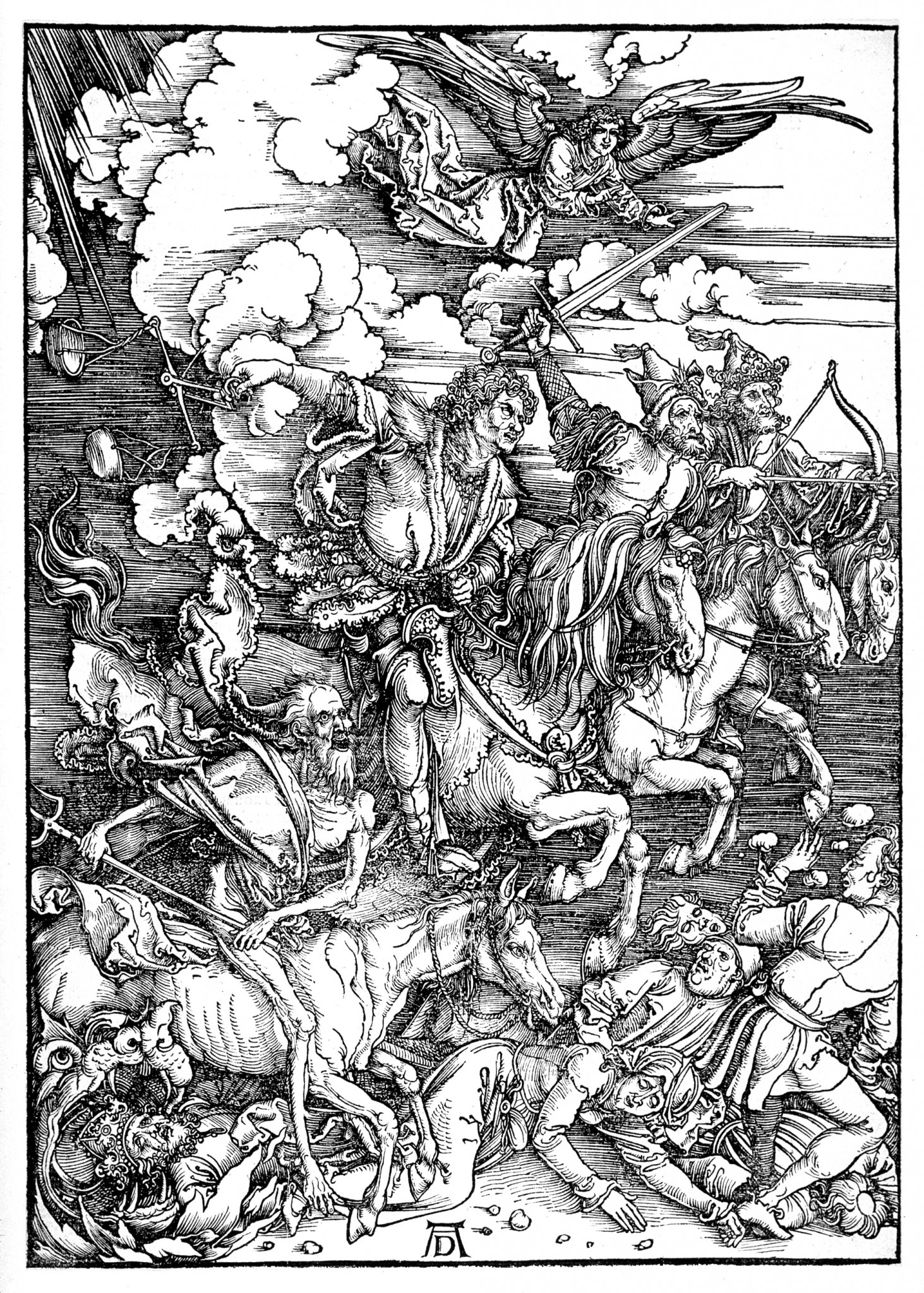 Гравюра - «Рыцарь, смерть и дьявол» (1513) полна символов. Перед нами дорога в сумрачном лесу, по которой не торопясь едет вооружённый рыцарь. Чуть впереди него полусгнившая фигура в короне (зритель уже угадывает в ней Смерть) играюче машет перед лицом всадника песочными часами. На быстротечность времени «по-братски» намекает: «Тлен всё, куда ты спешишь...».