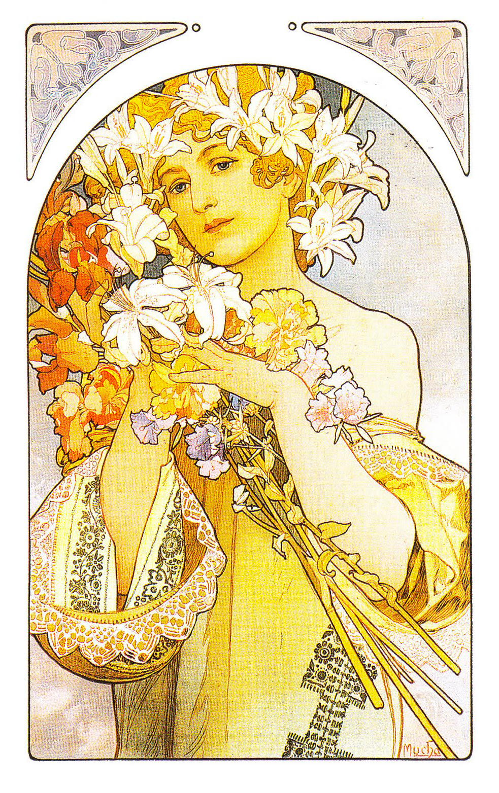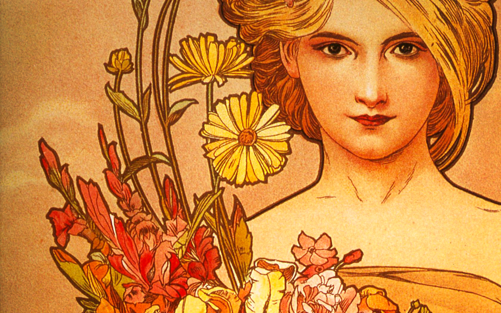 Его имя чётко ассоциируется со стилем Модерн. Его ещё часто называют Ар-нуво, что в переводе с французского означает «новое искусство». Это направление вошло в моду в конце 19-го века, а угасло в 10-х годах 20-го. Растительный орнамент, изогнутые линии, отказ от углов – вот основные отличительные черты Модерна. Забавно, что Муха не любил это направление и лишь зарабатывал деньги с его помощью.