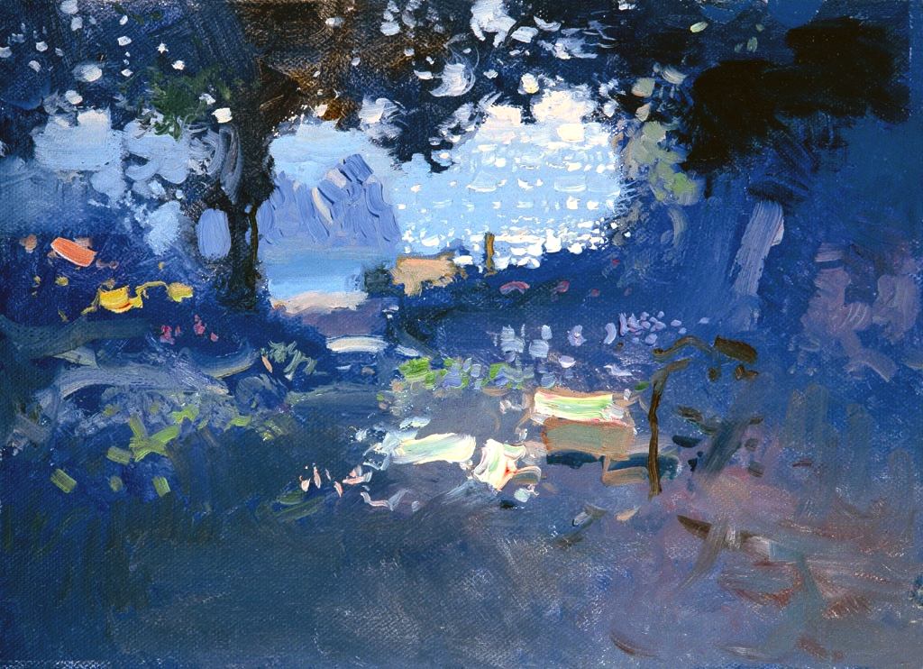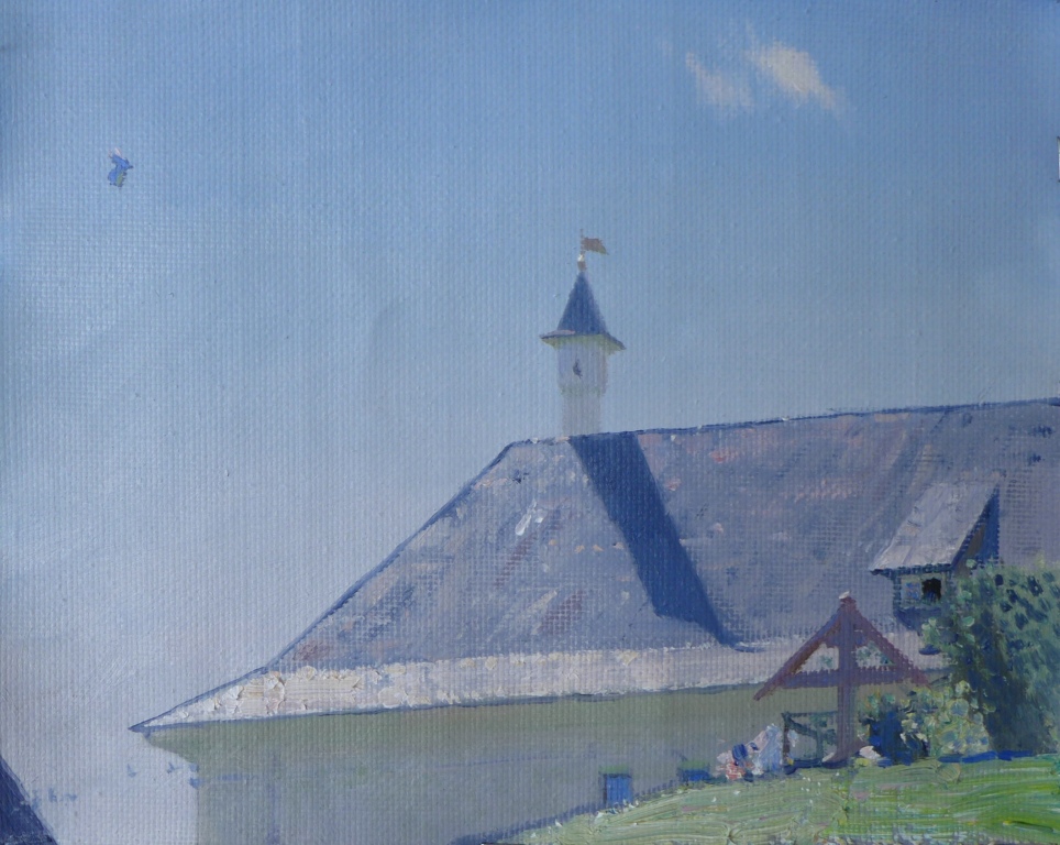 На мой взгляд, творчество зависит от многих факторов, и чем стеснённее обстоятельства, тем круче. Допустим, нет мастерской, тогда художник пишет на кухне или в каморке, которую определила семья, а ещё лучше − на свежем воздухе, без стен, под естественным освещением. И это плюс, когда художник попадает в гущу художественных событий, что произошло со мной в 1999 году. Я с семьей временно метнулся в Москву в связи с росписями в храме Христа Спасителя. Годовой переезд из временного превратился в постоянный, и вернуться уже не было никаких сил. Главное — это то, что для творчества была открыта дорога. Выставки, путешествия, друзья. Накаты выставок требовали постоянного пополнения коллекции, поэтому писалось хорошо и бодро. Молодость, сила и энергия. То, что стилистически выстраивалось в Суриковском институте, притухло, и свежий ветер импресьона захлестнул мое творчество.