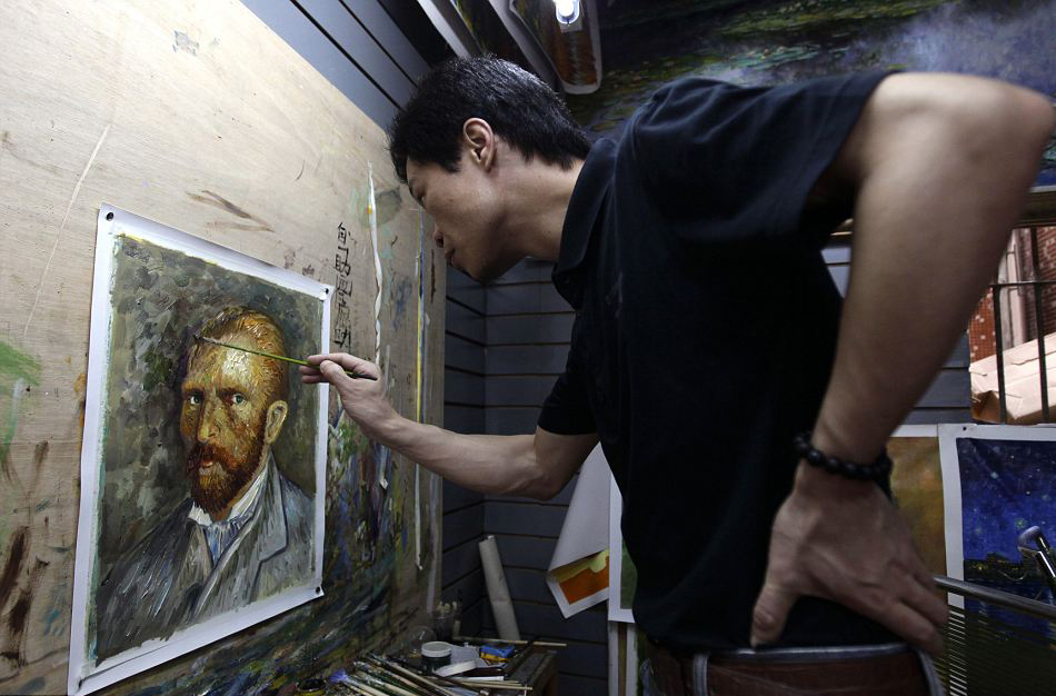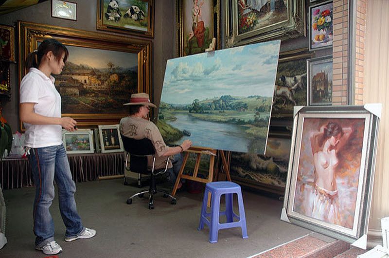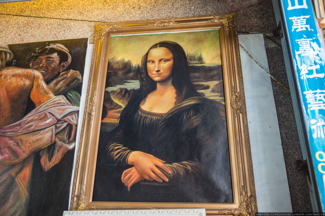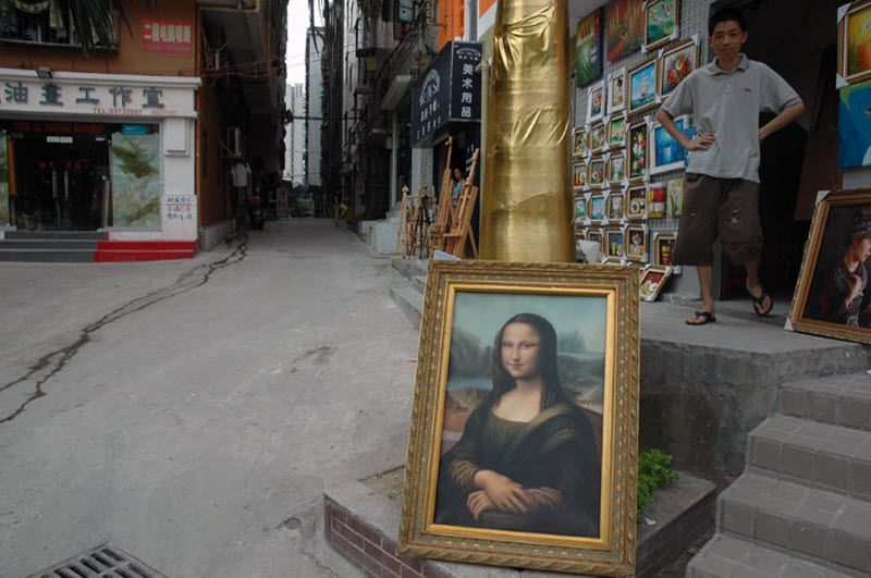 Но одно из самых крупных объединений находится на юге Китая, в местечке Дафен. Впрочем, деревней это сложно назвать. Скорее, это район в пригороде Шэньчжэня. Эта «деревня» специализируется на создании копий картин известных художников. Производство Дафена стало настолько популярным и востребованным, что на сегодняшний день около 60% всех копий мира производится именно там. Кажется, на прилавках местных мастеров можно найти всё — от Рафаэля до ван Гога.