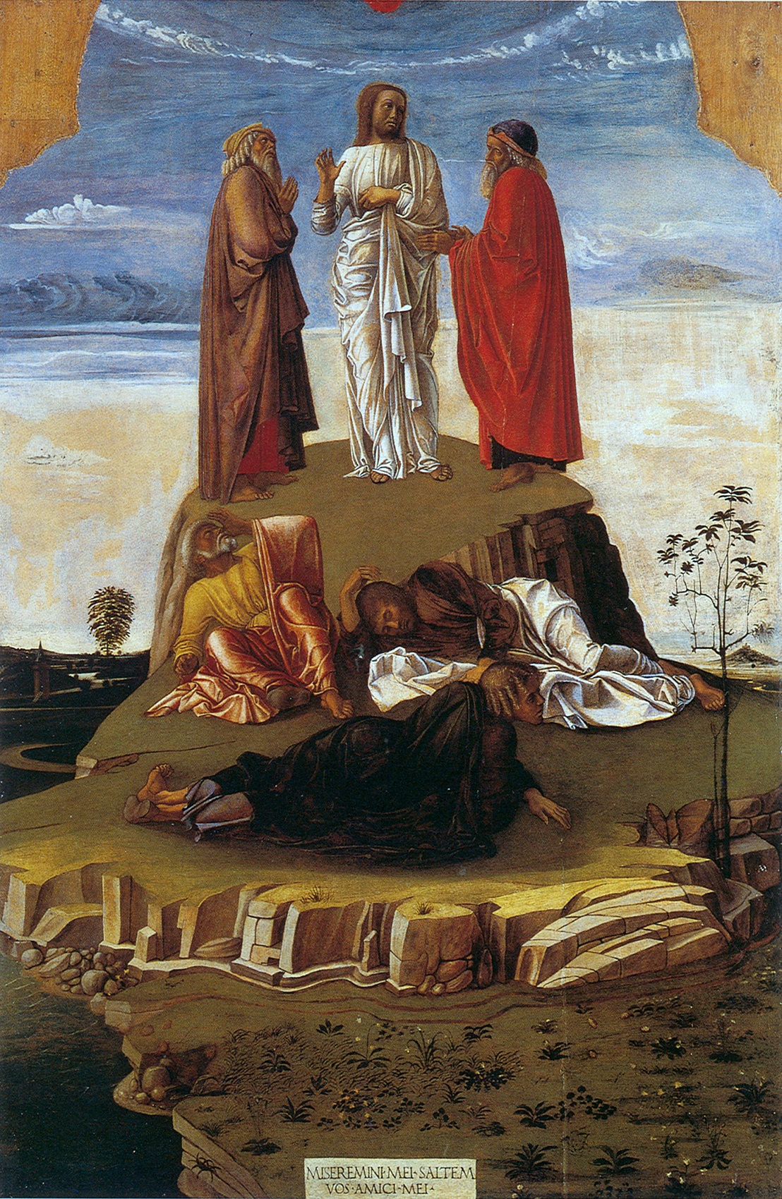 Особенно заметно влияние Мантенья в одной из работ Беллини – картине «Преображение». На ней Джамбеллино изобразил стоящего на плоской вершине скалы Иисуса и двух апостолов, фигуры которых напоминают античные статуи.