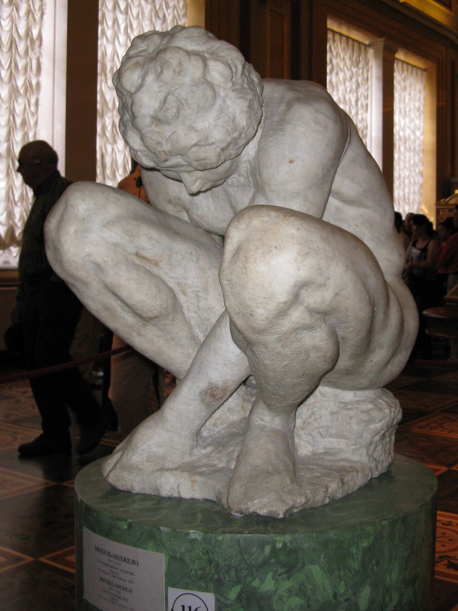 Многие искусствоведы видят в юноше, низко склонившемся к земле, состояние флорентийцев в 1529-1530 годах после того, как на город напали испанцы. Но чтобы прочувствовать всё то, что творится в душе у запечатленного мастером человека, скульптуру совсем не обязательно привязывать к конкретным историческим событиям. В его позе «читается» очень многое: это желание защититься от напастей, но в то же время справиться с ними, в один прекрасный день разогнуть спину и стряхнуть с себя многочисленные беды. Это единственная скульптура Микеланджело, которая находится в России, ее в 1785 году приобрела императрица Екатерина II.
