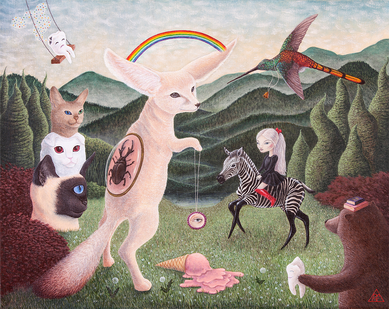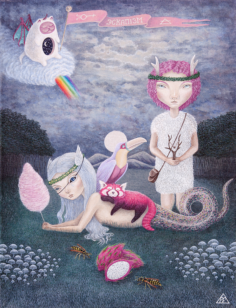 Я начала писать картины, когда обрела настоящее внутреннее счастье. Это очень важная составляющая, поэтому я до сих пор не могу работать, если расстроена или рассержена. Все мои произведения, даже если у них пугающий или печальный сюжет, наполнены светлой и доброй энергией. Конечно, в каждой работе есть какой-то определенный смысл, индивидуальная философия. Но даже у меня их восприятие меняется в зависимости от моего собственного состояния.