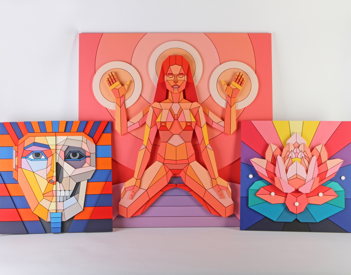 В течение двух последующих лет я в основном занимался созданием цифровых иллюстраций и вернулся к работе с фанерой только в 2011 году. Я думал, как сделать что-нибудь необычное для выставки Faces&Laces, и решил попробовать воплотить свои геометричные иллюстрации в фанере. Позднее я понял, что эти работы являются чем-то средним между рельефом, мозаикой и витражом.