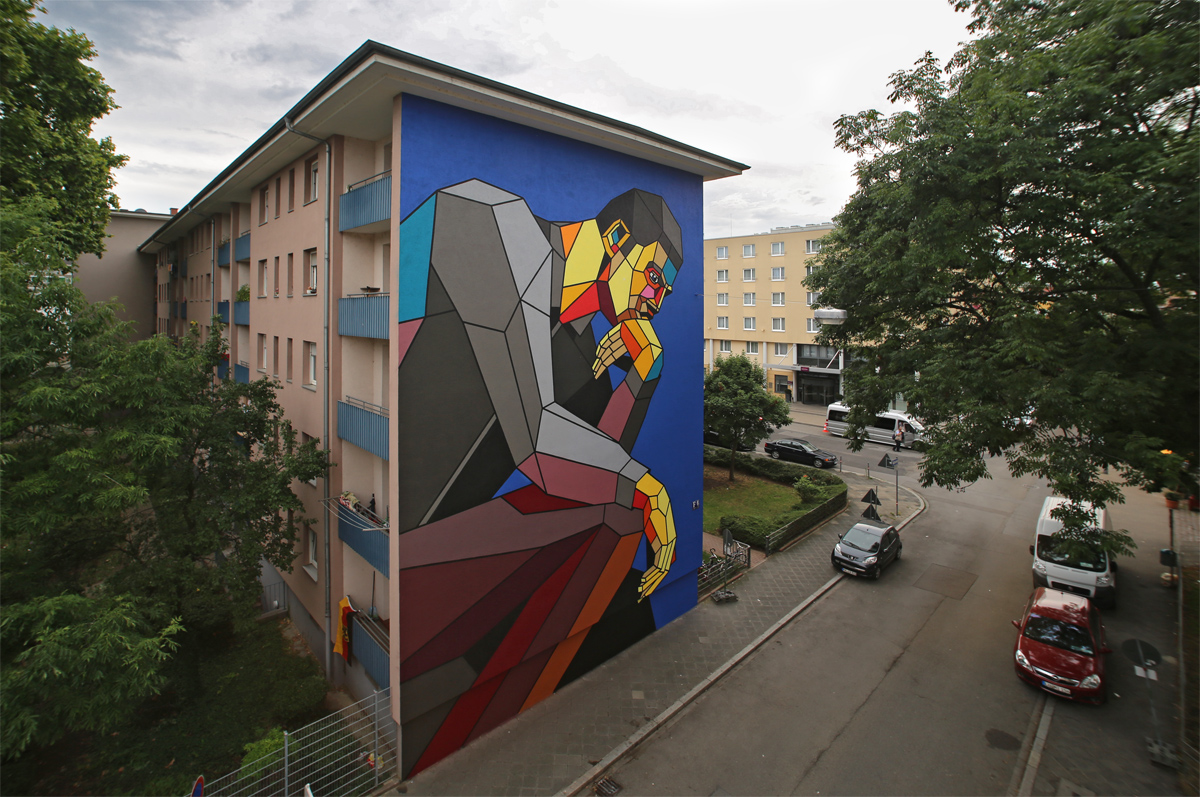 Сразу хочу пояснить, что граффити – это написание на стене своего псевдонима или названия команды. Я занимался этим с 2000 по 2009 год. После этого я какое-то время вообще ничего не делал на улице. То, чем я занимаюсь сейчас, рисуя на стенах, правильнее называть монументальной графикой.
