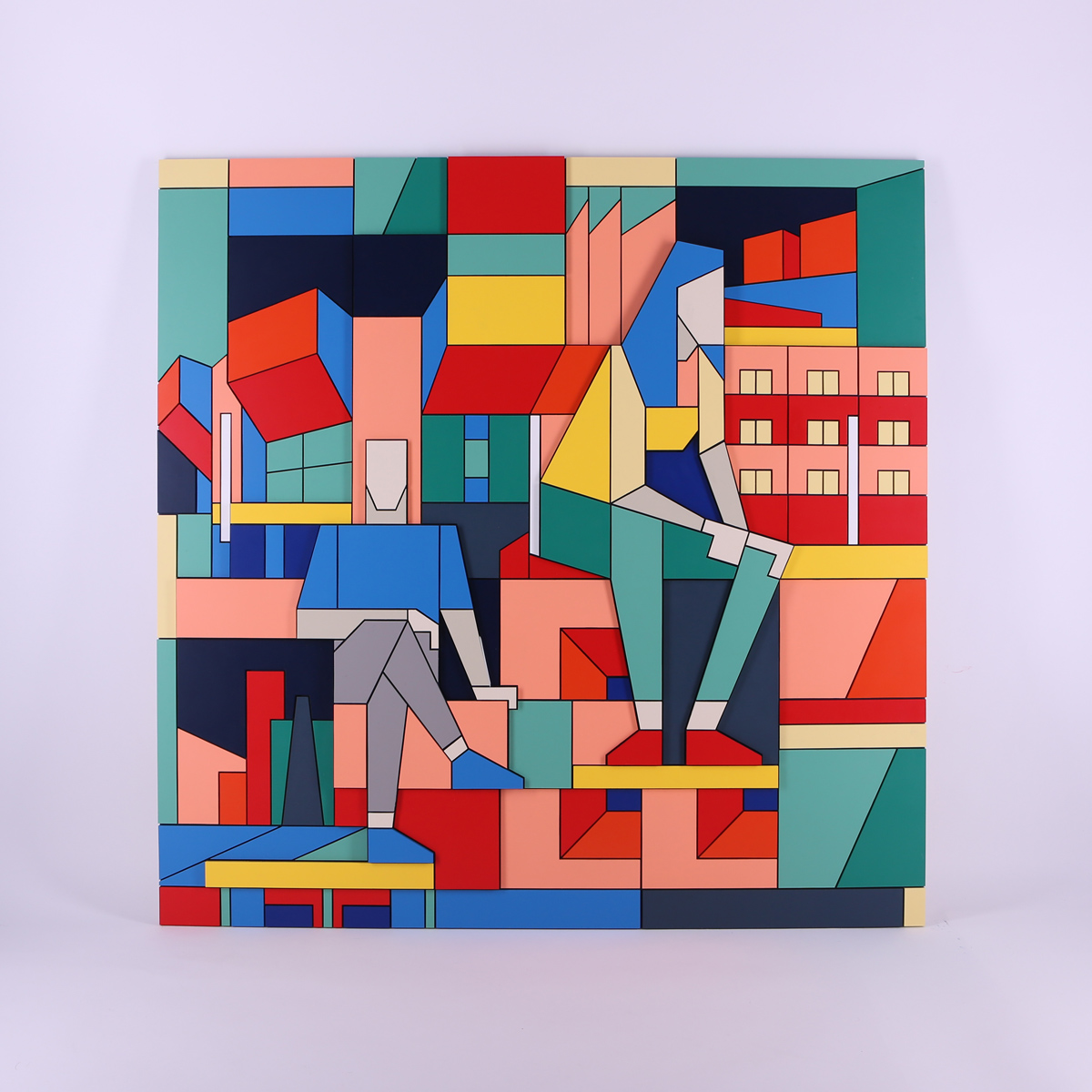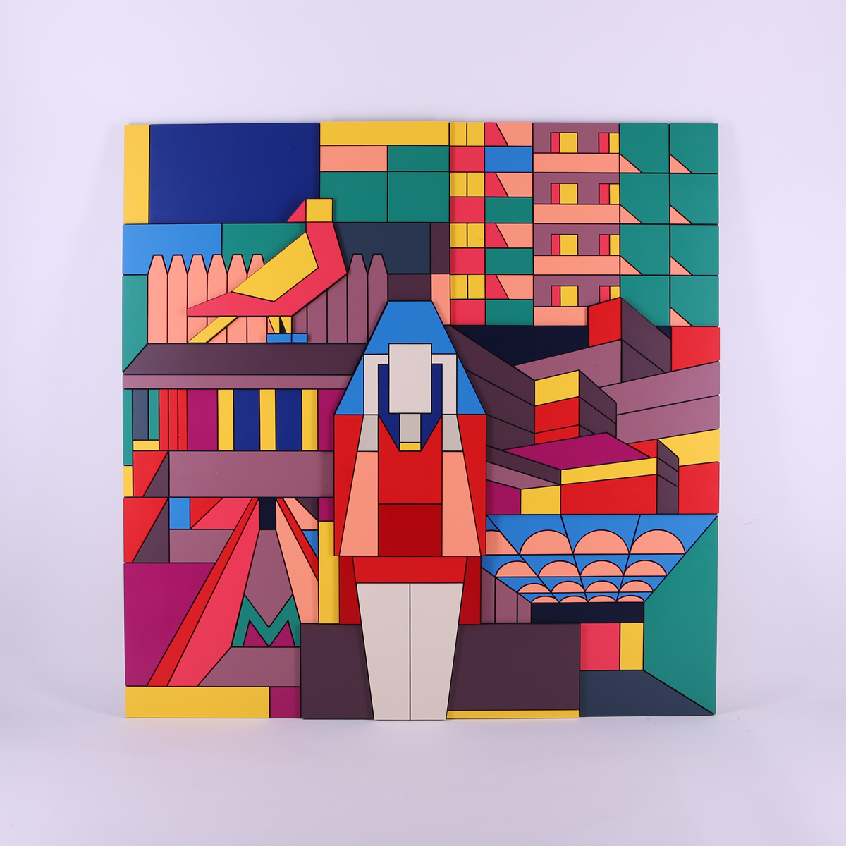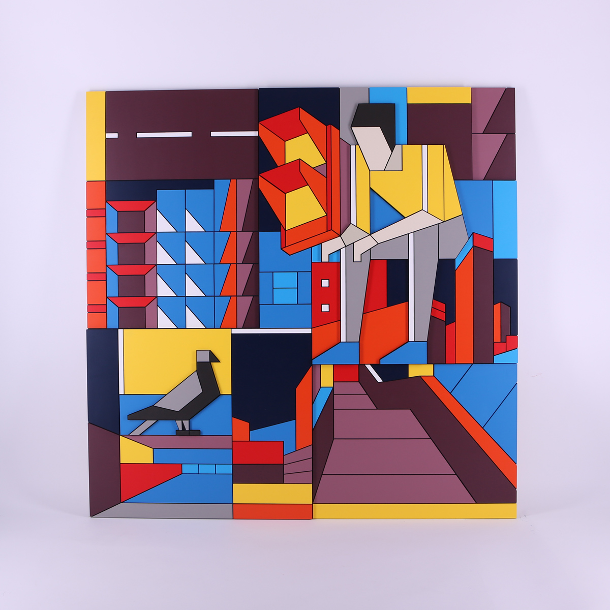 Разносторонний художник из Москвы создаёт необычные многослойные произведения из фанеры, пишет картины и занимается монументальной графикой. Отличительной особенностью его стиля является любовь к геометрическим формам и ярким цветам.
