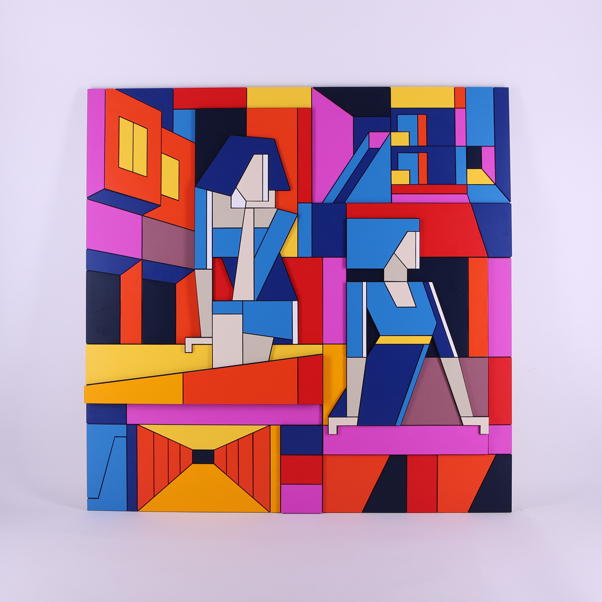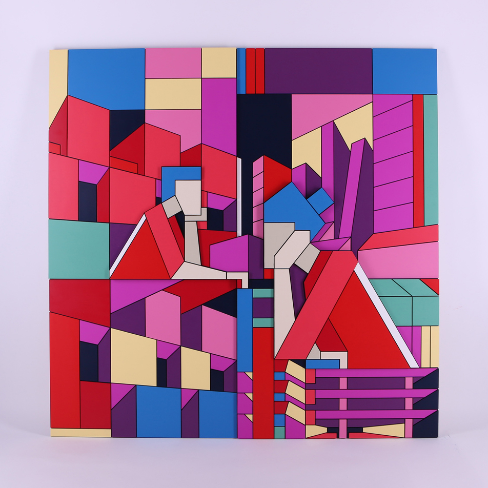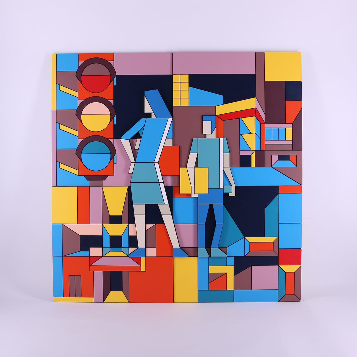 Разносторонний художник из Москвы создаёт необычные многослойные произведения из фанеры, пишет картины и занимается монументальной графикой. Отличительной особенностью его стиля является любовь к геометрическим формам и ярким цветам.