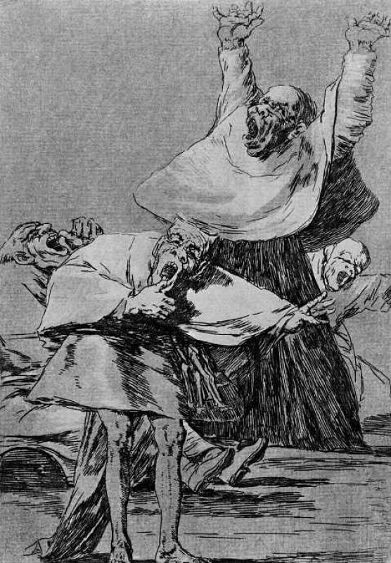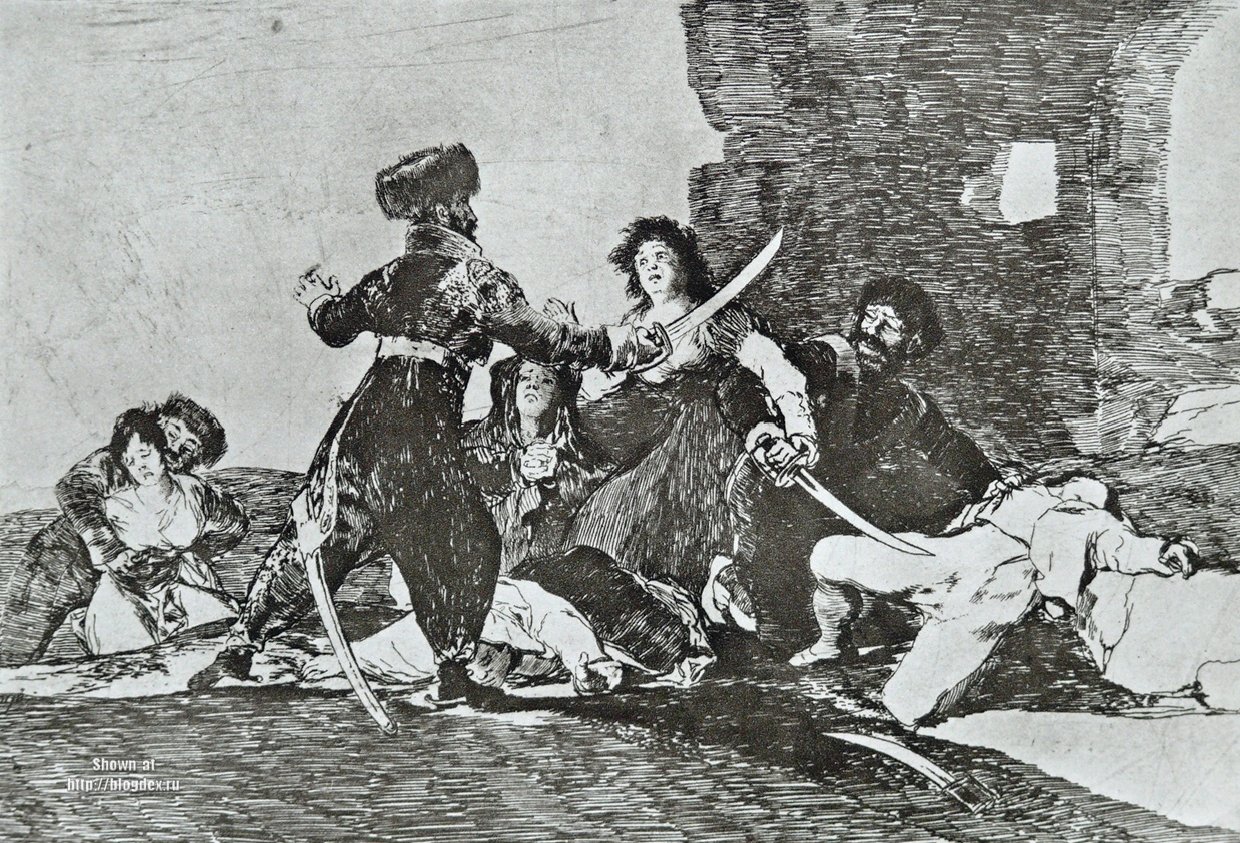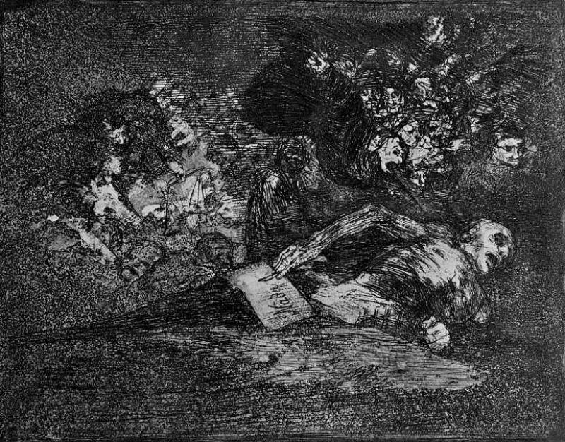 Стоит ли говорить, что офорты не имели успеха. Свет их не заметил, продажи провалились, но сам художник ликовал — впервые он получал настоящее удовольствие от того, что делает. Мастер реалистической живописи, будучи в преклонном возрасте, решил полностью изменить свой метод. И картины, до этого молчавшие, вдруг заговорили, даже не просто заговорили, а закричали! Ведь о том, что происходило тогда в Испании, можно было только кричать.