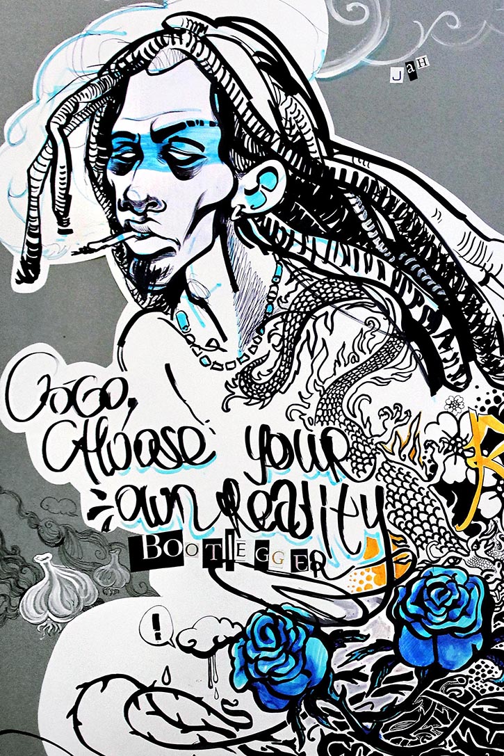 «И никто никогда не узнает, что его зелёные волосы были полностью au naturel – сумасшедший результат слияния глупых генов мамы Доуп и папы Джека. Слишком много наркотиков в мамином животике. Слишком много компьютерных игр в папином мозгу. Они сделали несчастного Доупджека тем, кем он был. Безобразным, как дурной сон. Слишком одиноким. Затерянным в музыке. Смесь во всём: в мелодиях и в генах. Обитель микшированного духа».