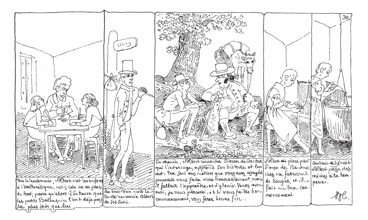 В ХIХ веке наблюдался расцвет рассказов в картинках, подталкиваемый такими техническими новшествами, как цинкография и позднее – фототипия. Но в этих рассказах текст и картинки были все еще отделены друг от друга. С художественной точки зрения рассказы-картинки достигли своего апогея при швейцарце Родольфе Тёпфере (Rodolphe Töpffer).