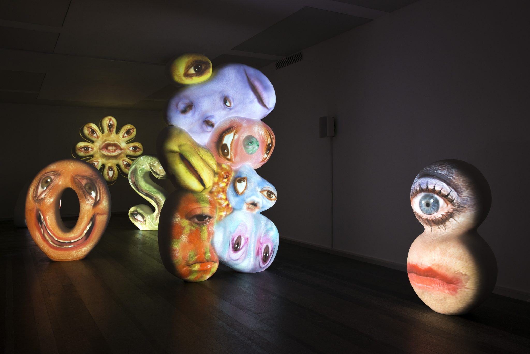 Интересно, что в своей художественной практике художник часто проецирует изображения на различные предметы, список которых довольно разнообразен. Тряпичные куклы, здания, мячи, клубы дыма, кроны деревьев - что только не служило «фоном» для лиц, которые изображает мастер!