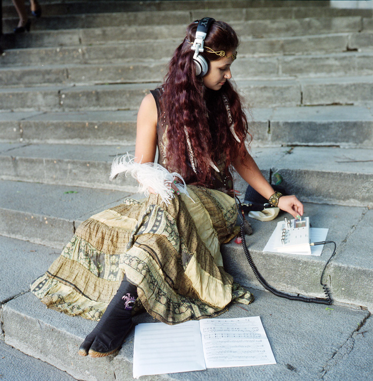 Дальше я купила специальную литературу и штудировала руководства по программе. Какие-то особенно интересные моменты я проверяла на практике, а ответы на непонятные вопросы искала в интернете. Так рождались мои первые треки. В 2009 году состоялось моё первое выступление в качестве группы. В ней принимали участие вокалисты и музыканты-инструменталисты: гитаристы, перкуссионисты. Коллектив существует и сейчас. На данный момент постоянным участником группы, помимо меня, является Евгений Краснов, вокалист и варганист. Также практически под каждое выступление собирается определённый состав музыкантов. Они играют на гитаре, диджериду, барабанах и разных этнических инструментах. Ни одно наше выступление не похоже на другое.