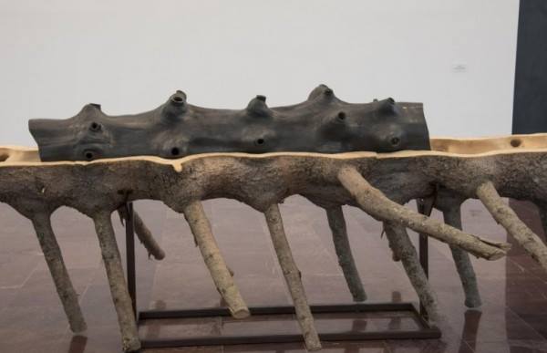 Захватывает своим гигантизмом прогулка в инсталляции «Измерение леса». На пьедесталах величественно возвышаются преобразованные в новые формы стволы. Но рядом один из гигантов завален по диагонали, и создает ощущение шаткости положения даже вековых устойчивых материй. Однако по соседству уравновешивает ситуацию эстетизированное представление о непоколебимой вечности через метафору филигранно запечатанного в мрамор корневища и прорастающего из него живого ствола. Так открывается тема времени.