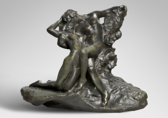 А ниже в Аду у нас сама любовь. Это «Амур», Роден дополнил его женской фигурой. Паоло и Франческа, известная трагическая история любви которых описана у Данте, тоже тут. А чуть выше нам рассказана история Графа Уголино и его сыновей. Вот она плоть, пожирающая сама себя.