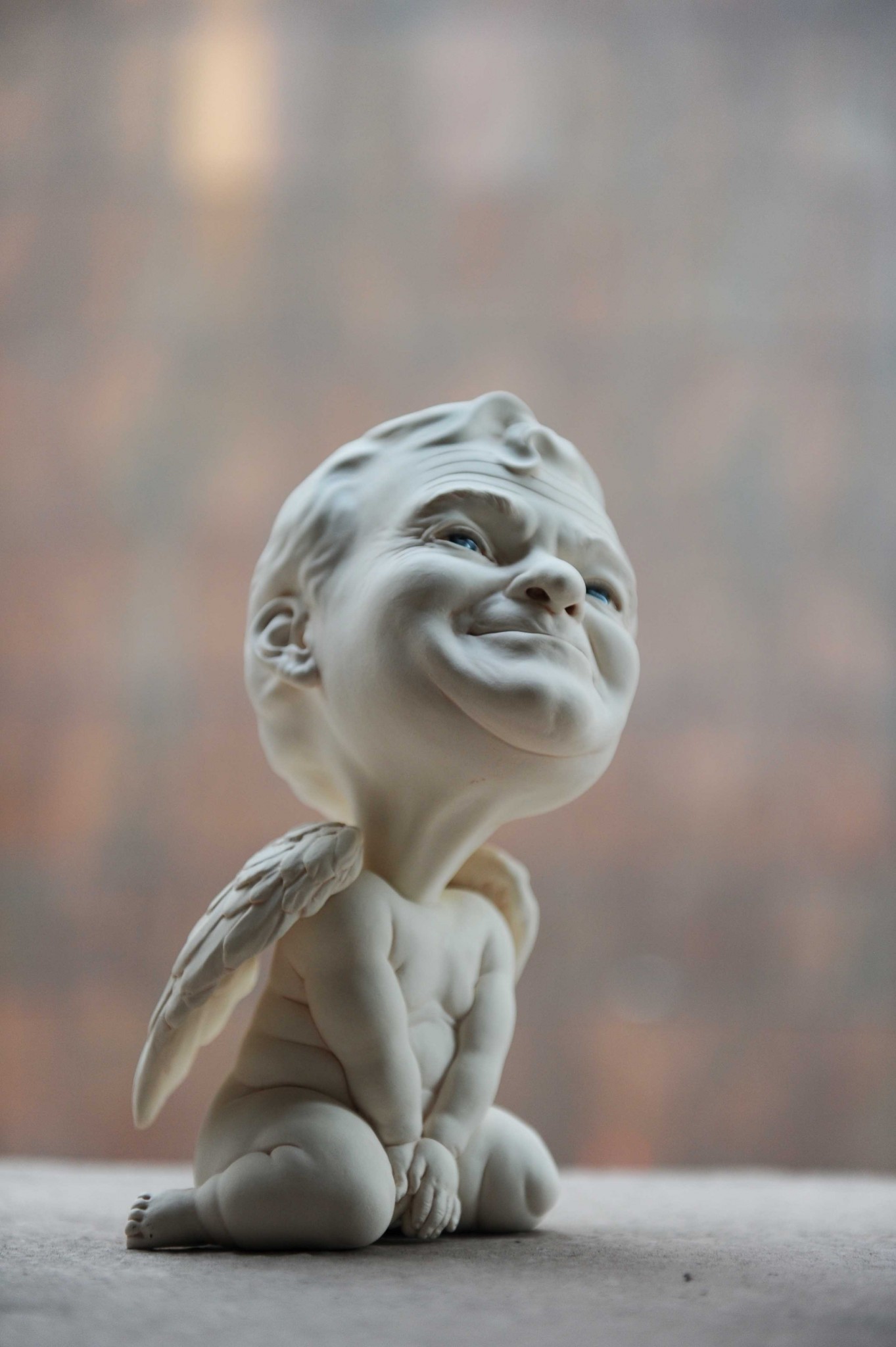Один из этих ангелочков, впрочем, совсем не похож на других. Хотя все его собратья – непосредственные дети, этот, имея такое же миниатюрное пухленькое тело, стал обладателем лица Робина Уильямса. Произведение посвящено памяти прекрасного актёра и носит выразительное называние «Я получил новую работу!» (I’ve Got a New Job!). Скульптура с крыльями лаконична как по форме, так и по цветовому решению, акцент мастер сделал лишь на голубых глазах персонажа.
