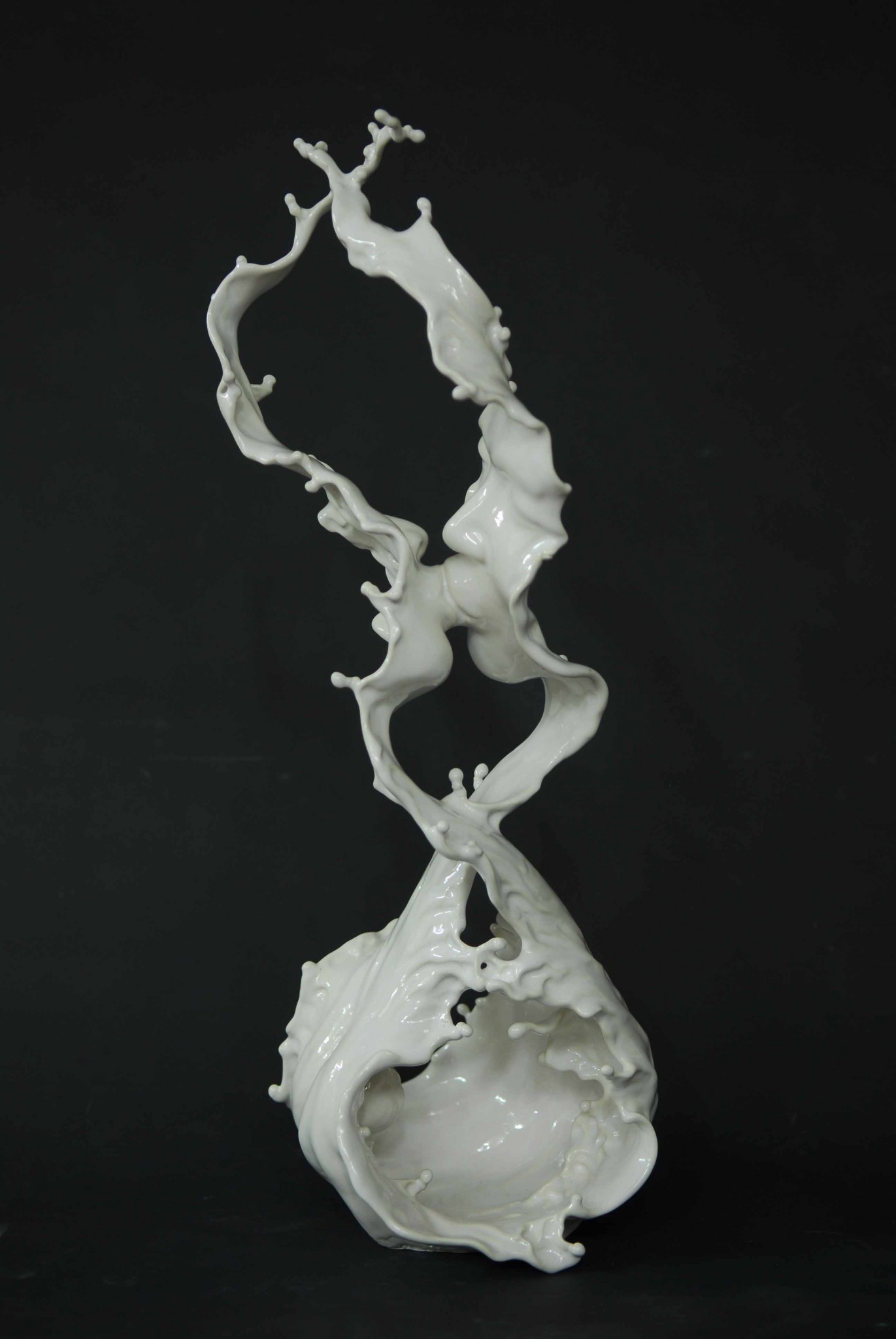 Одну из них составляют произведения, имитирующие воду. Все работы, относящиеся к «водной» теме, в буквальном смысле рассыпаются жемчужинами брызг, рождая при этом легко узнаваемые образы. В композиции «Кофейный поцелуй» (Yuanyang) потоки шоколадного напитка, струящиеся из пёстрых чашек, сливаются в поцелуе за секунду до того, как коснутся стола. В этой работе продуманно абсолютно все — от изгибов струй и крошечных капелек до цвета произведения.