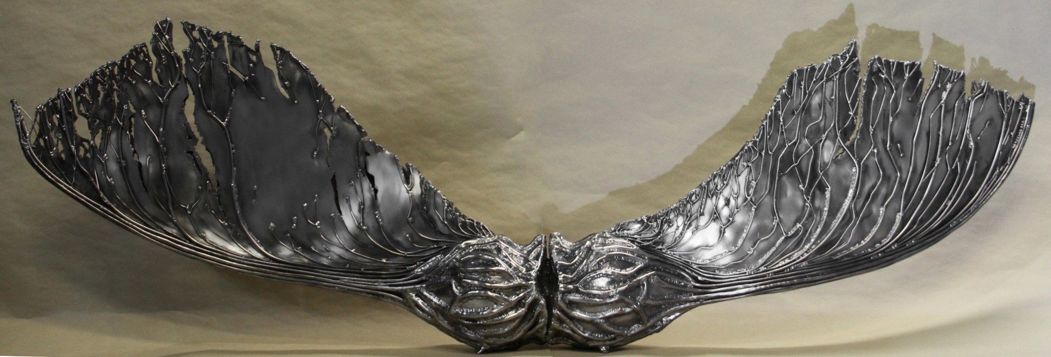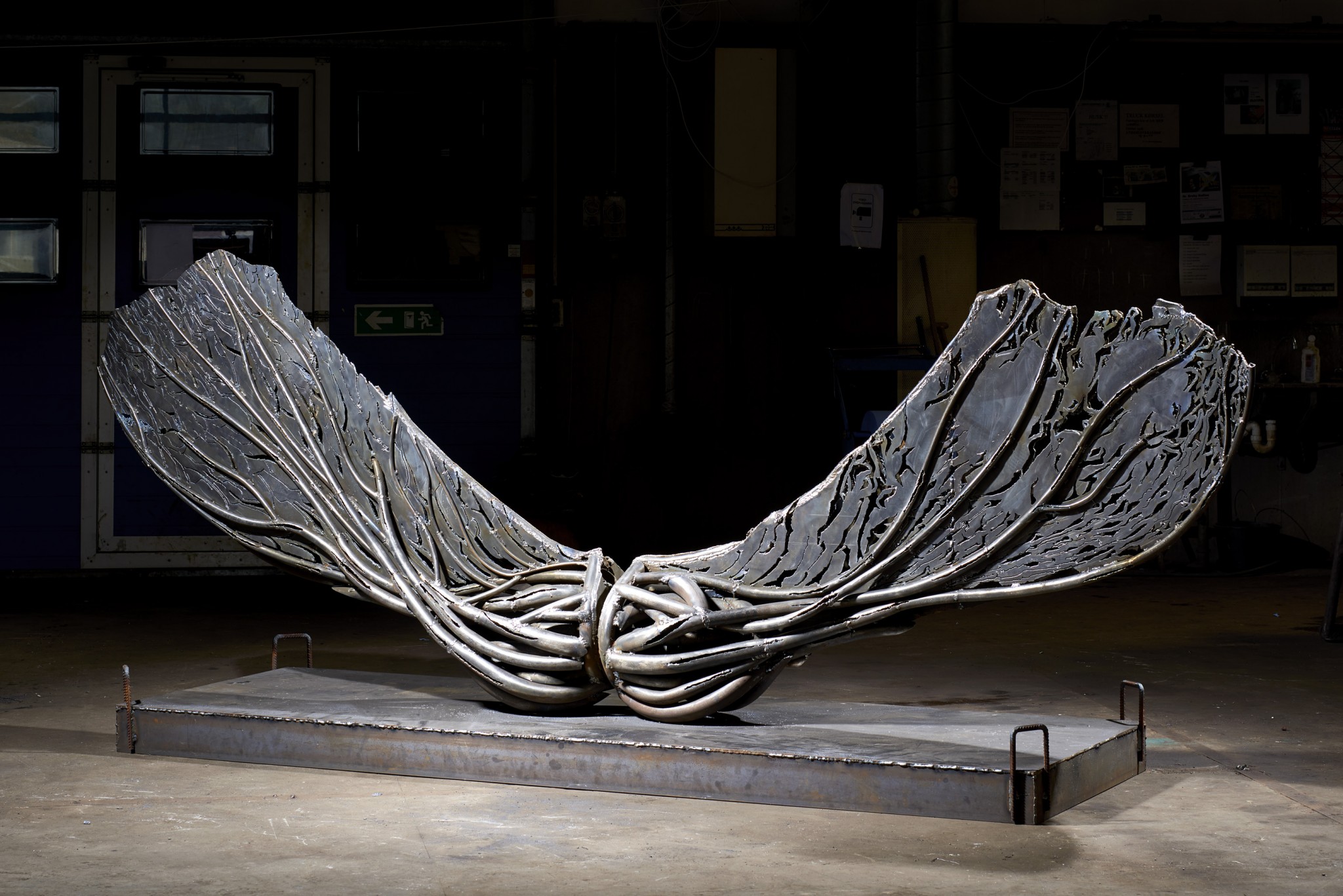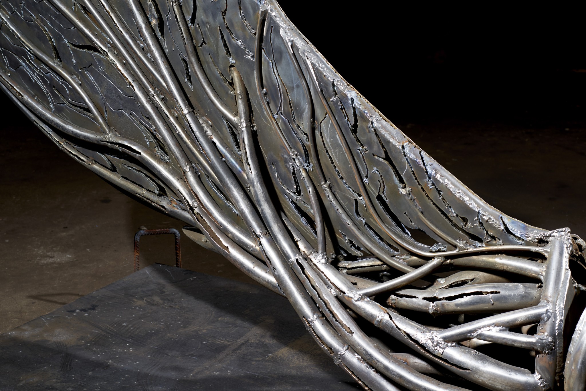 Анастасия: Мы с Сергеем впервые начали работать именно над этой выставкой. С первого обсуждения стало ясно, что это совмещение растительных форм и индустриальных материалов, очень много природных мотивов, изящества линий. Из-за выбора самого материала - металла - в работах чувствуется сильная урбанистически-технологичная составляющая, но, в то же время, она сочетается с плавными сюжетами живой природы.