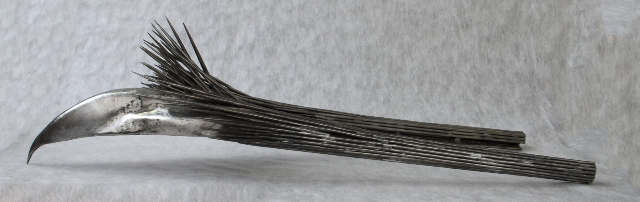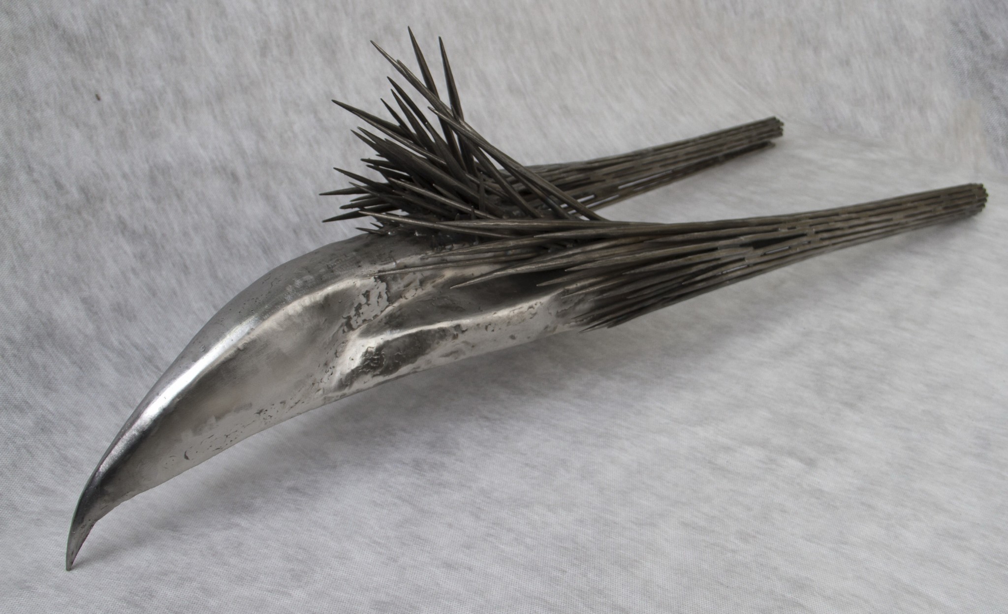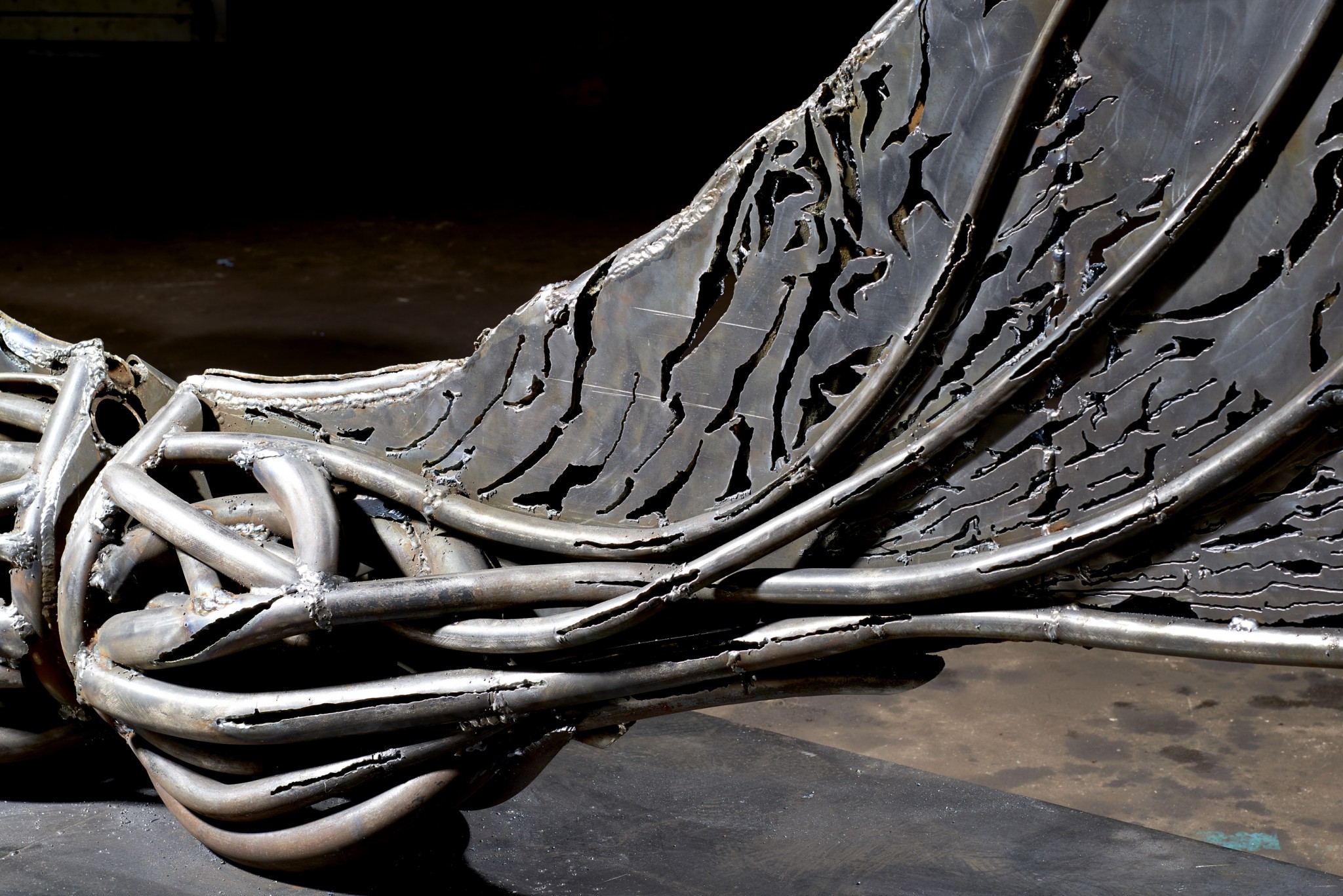 Анастасия: Мы с Сергеем впервые начали работать именно над этой выставкой. С первого обсуждения стало ясно, что это совмещение растительных форм и индустриальных материалов, очень много природных мотивов, изящества линий. Из-за выбора самого материала - металла - в работах чувствуется сильная урбанистически-технологичная составляющая, но, в то же время, она сочетается с плавными сюжетами живой природы.