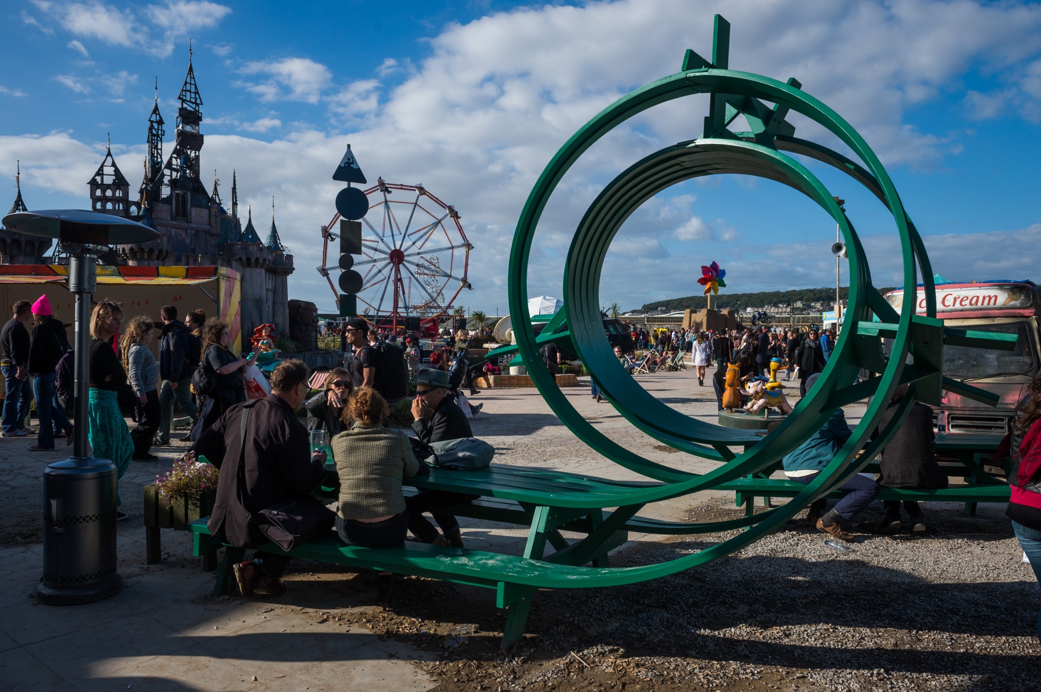 Стол для пикника, делающий мертвую петлю, специально для Бэнкси создал известный мебельный дизайнер Майкл Бэйц.