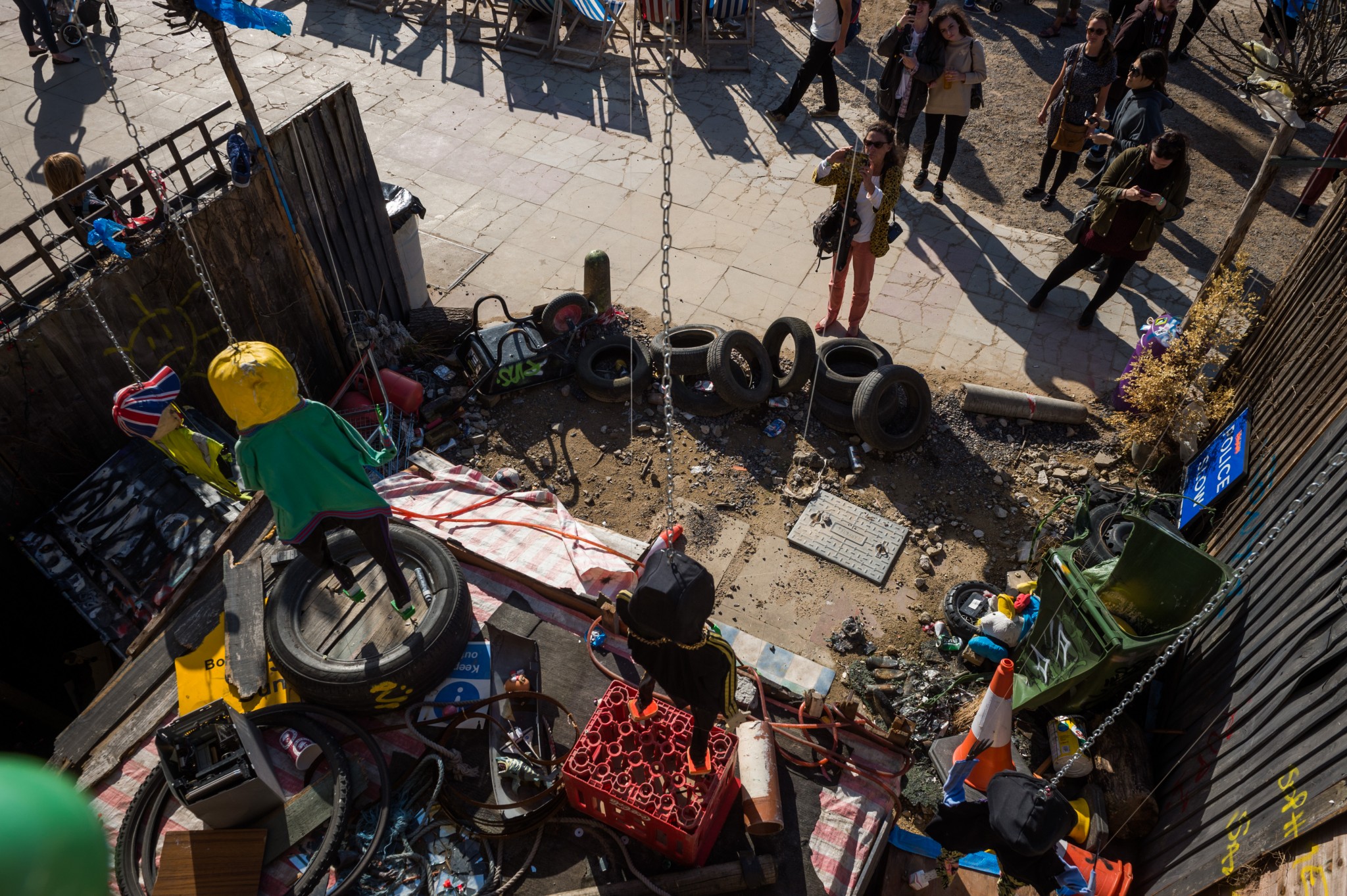 За месяц работы парк посетило больше 150 000 человек! Это при том, что попасть в Дисмеленд было непросто. Билеты через интернет раскупили за несколько часов. А в очереди на вход надо было провести немало времени. Кстати, главная фобия Бэнкси — показаться продажной душонкой. Поэтому билеты на вход стоили всего по три фунта. После покупки билетов гости подходили ко входу. Здесь их сразу встречала первая инсталляция — картонная версия зоны безопасности.
