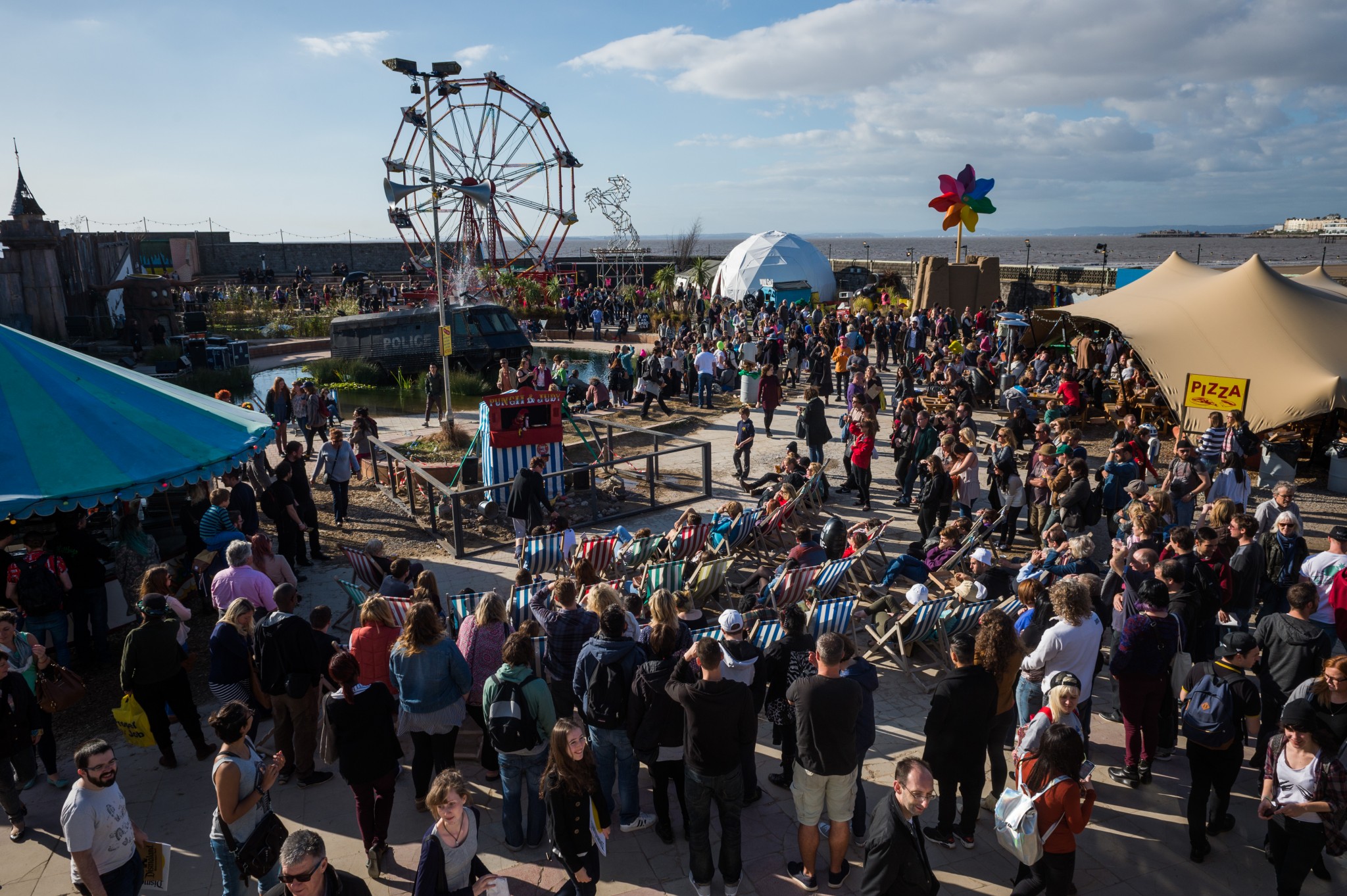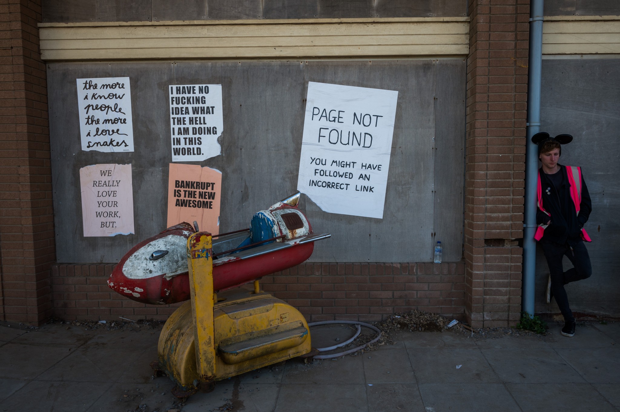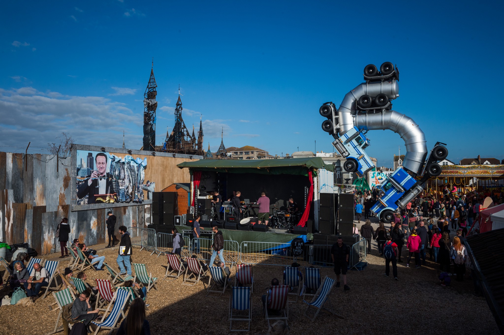 Каким-то чудом мне удалось попасть в знаменитый Парк Потрясений Dismaland перед самым его закрытием. Это масштабная выставка легендарного уличного художника Бэнкси (Banksy). Открыли парк в конце августа на территории бывшего бассейна Tropicana курортного города Уэстон-сьюпер-Мэр (Weston-super-Mare) всего на один месяц. Добираться от Лондона до парка надо почти три часа! Несмотря на это, за месяц парк посетило 150 000 человек и до последнего дня стояли адские очереди.