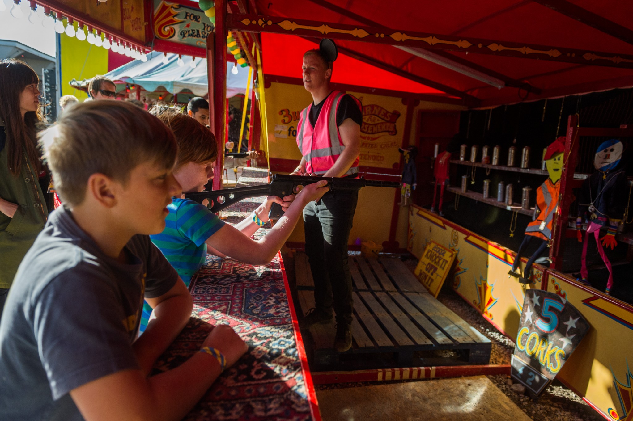 Или вот, супер-аттракцион. За один фунт тебе дают три шарика для пин-понга, которыми ты должен сбить с постамента чугунную наковальню. Победитель в подарок получает… наковальню!