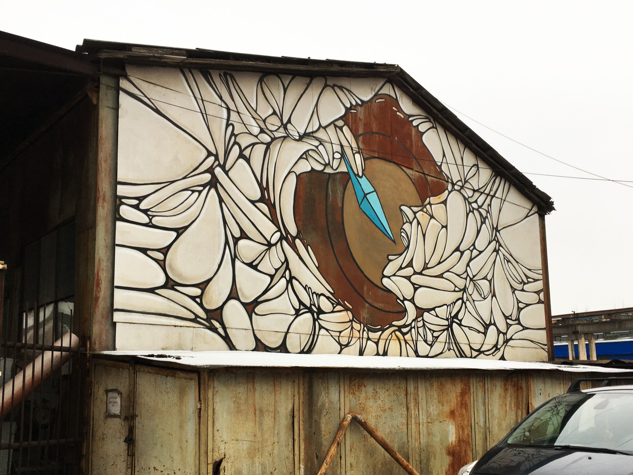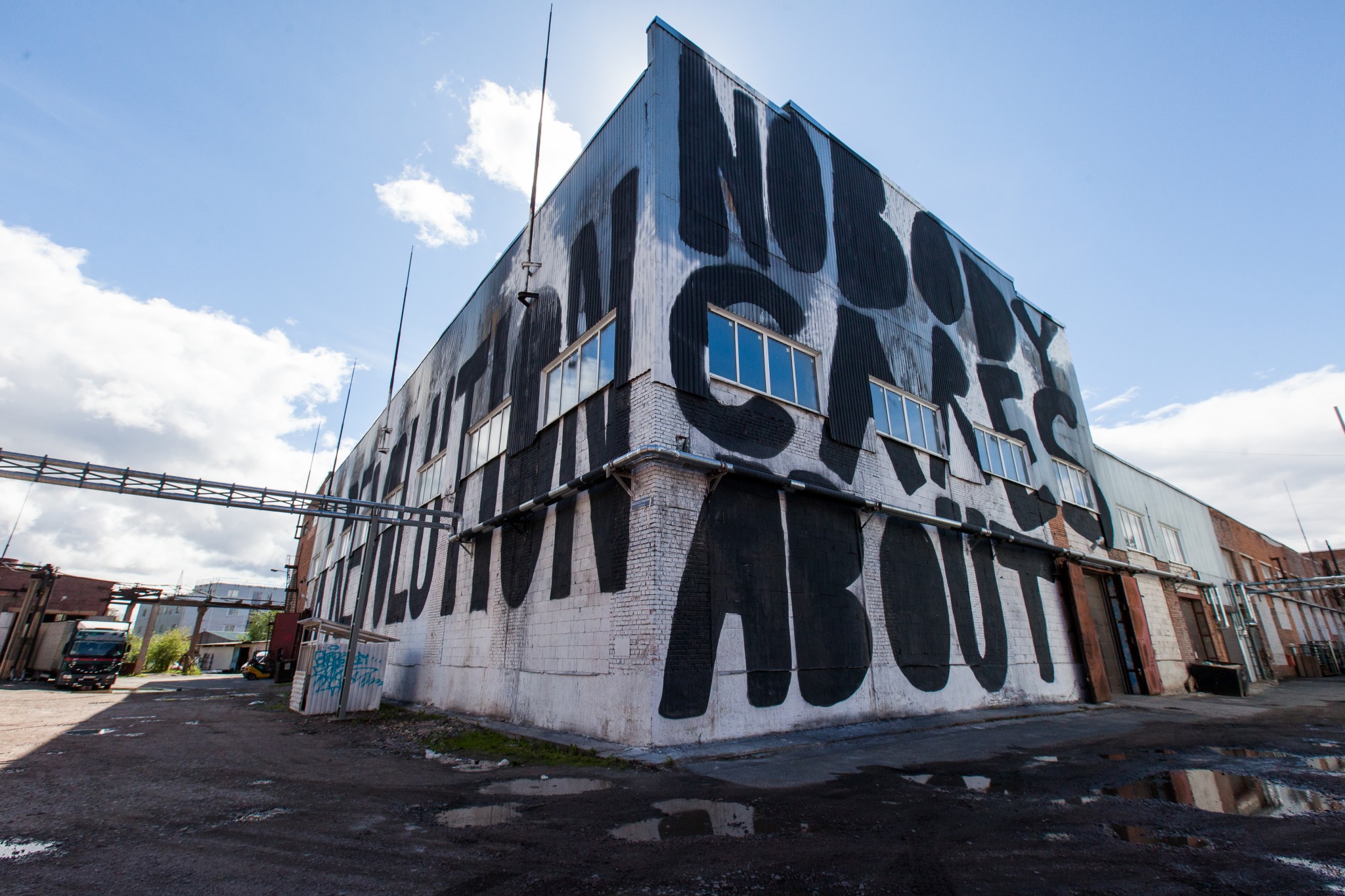 Производственная территория устроена как «город в городе». Тут есть свои улицы, структура и архитектура, а корпуса и цехи как раз отлично подходят для граффити. Что примечательно, названия улиц достаточно необычны: «Тупик цивилизации», «Потусторонняя улица» делают из самого завода масштабный арт-проект.