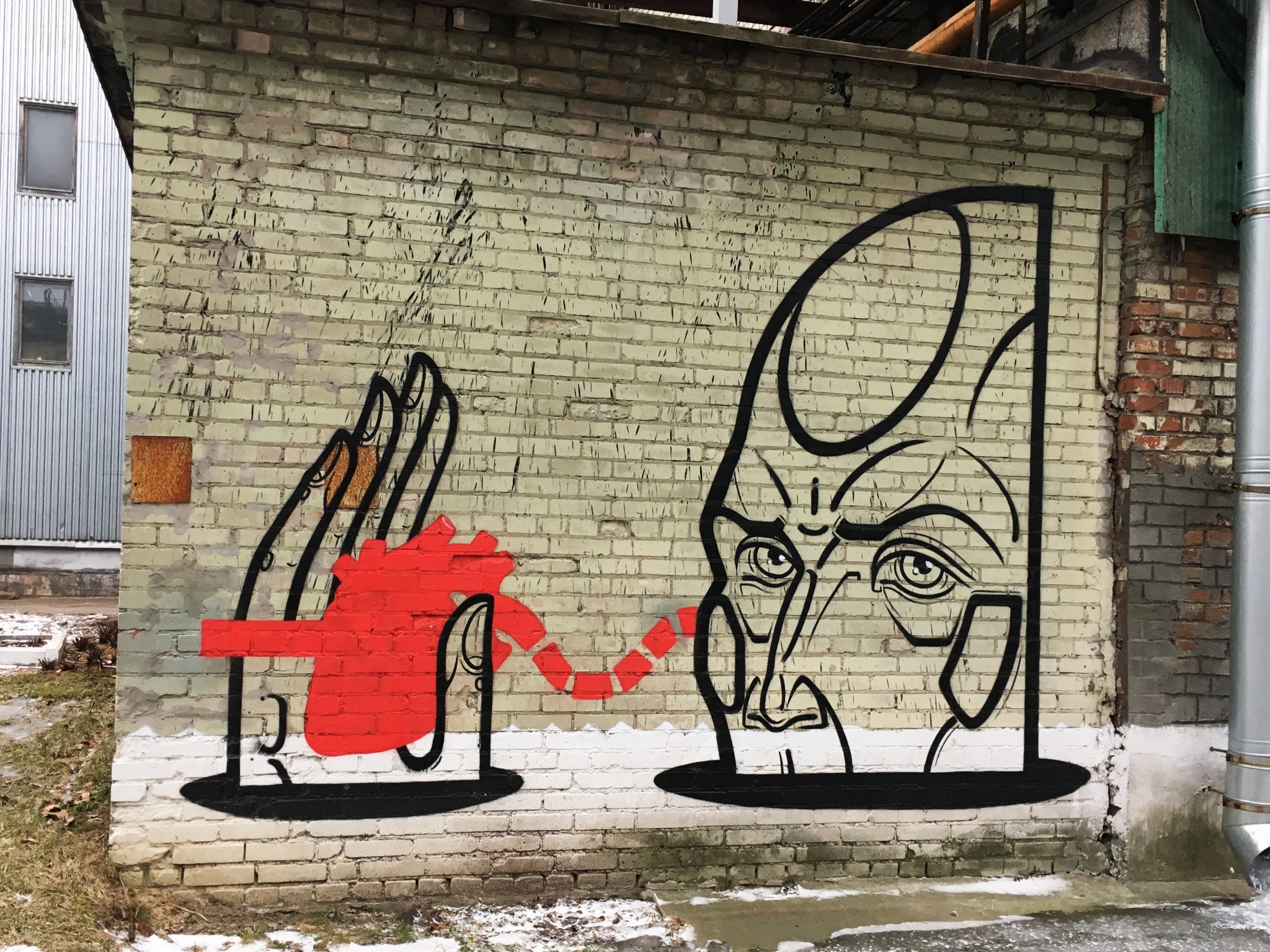 А граффити с сообщениями Филиппо Минелли несет в себе классическую постмодернистскую практику. Художник просто «выставил» диалог с координатором, темой которого были сложности в получении визы для приезда в Россию. Это не просто хорошее произведение уличного искусства, подходящее в общую концепцию проекта, это буквально иллюстрация поднятой проблемы из жизненного нарратива художника.