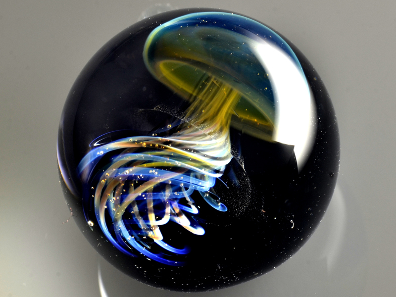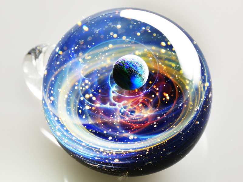 Небольшие стеклянные шарики на первый взгляд напоминают живую иллюстрацию к фильму «Люди в черном», но в отличие от кино, где галактика на поясе у Ориона была всего лишь компьютерной графикой, произведения Томизду более чем реальны.