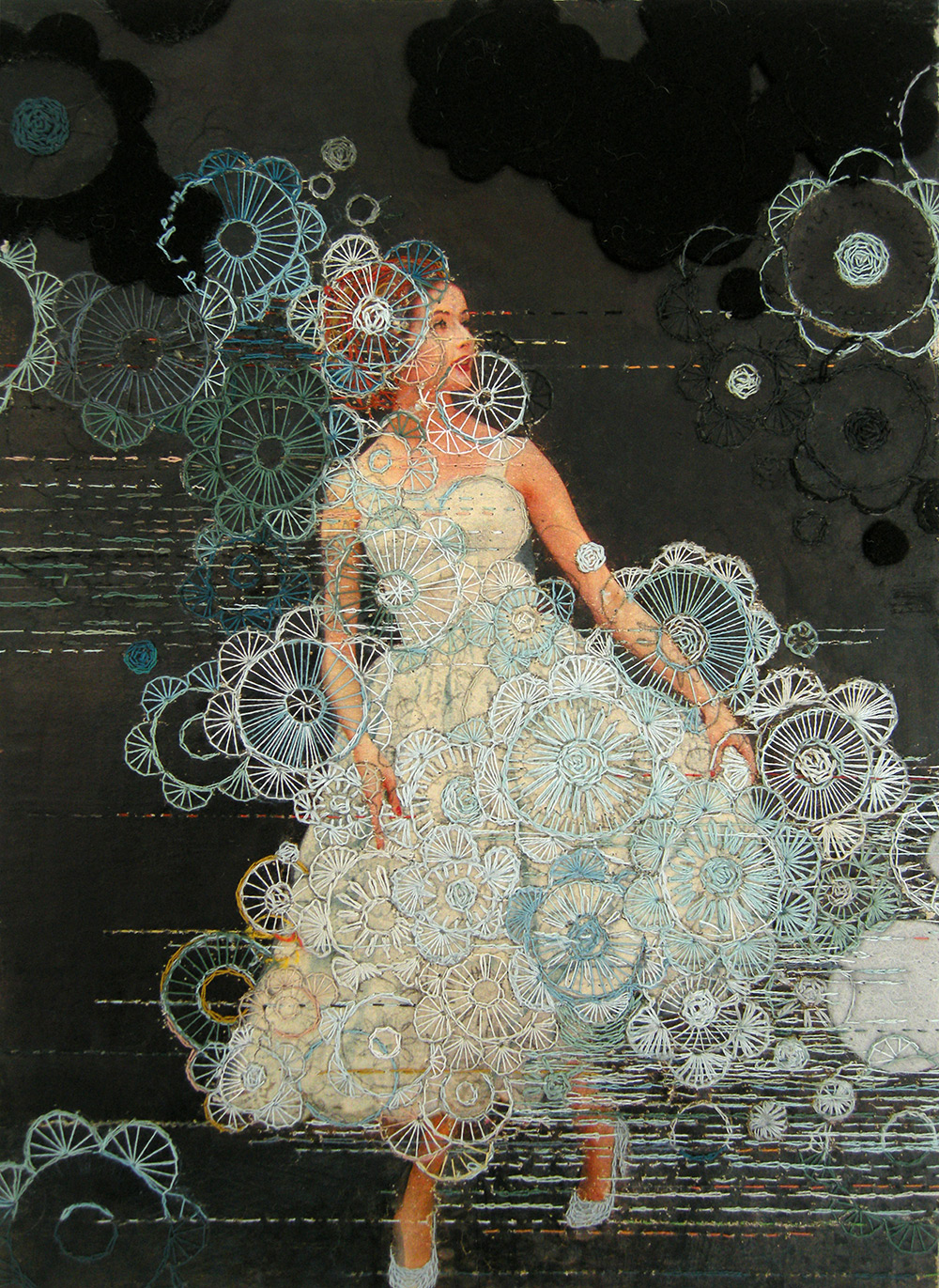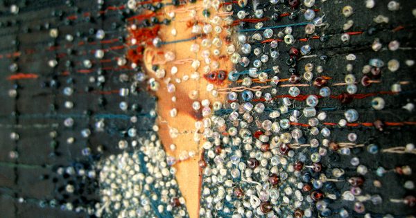 Суть её работ кажется удивительно простой, но только на первый взгляд. В качестве основы для своих творений Шрёдерс использует старинные рекламные фотографии, а также иллюстрации далёких 1950 годов, и создаёт их своеобразные ремиксы. Бисер, разноцветные нити, кружева – именно те вещи, которые заставляют по-новому засиять «картинки» из прошлого. А многослойная техника позволяет придать фотографиям больше объёма и делает их более осязаемыми.