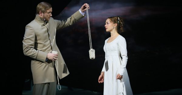Начнем. «Тамани» здесь нет. «Фаталист», открывающий повествование, сведен до одного эпизода — пари Вулича. Режиссер спектакля, по совместительству главный режиссер театра, Юрий Еремин решил сконцентрироваться на «Бэле», «Максиме Максимыче» и «Княжне Мери», то есть на взаимодействии Григория Печорина с близкими ему людьми.
