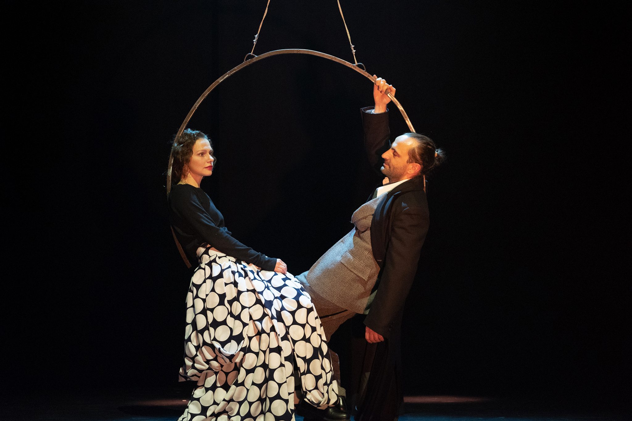 На пользу истории работает сценография. Решение с отсутствием каких-либо декораций поддерживает лейтмотивы внутренней пустоты, одиночества и страха, а смена тонов света то и дело меняет ощущение коробки сцены с холодного и пустого на теплое и просторное. Ведь жизнь не может быть без счастливых мгновений. Второе состояние появляется, в основном, в парных эпизодах Михаила и Ольги. Говорящая деталь.
