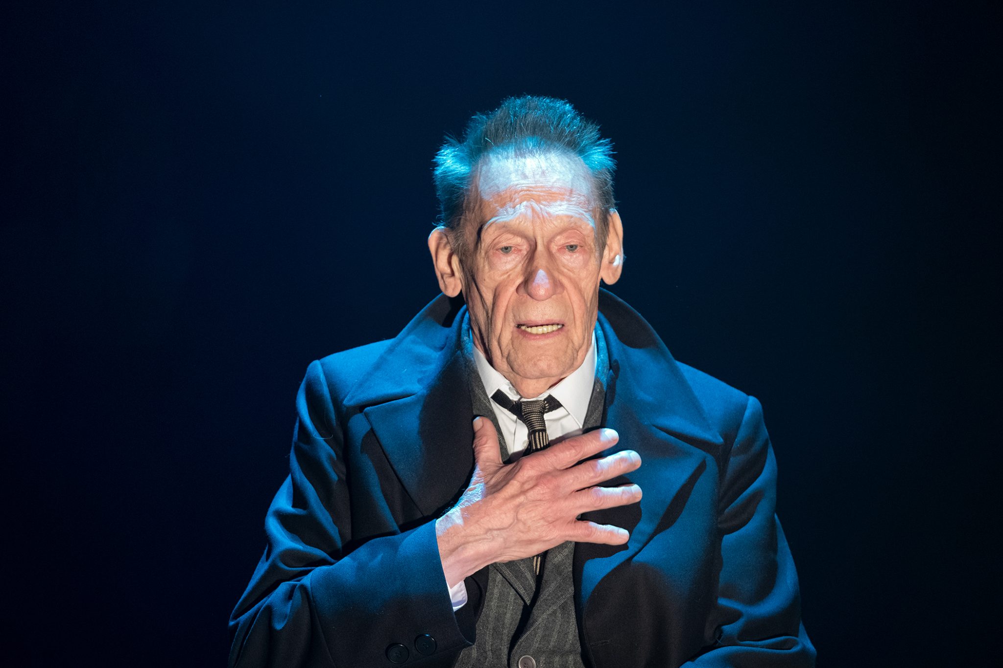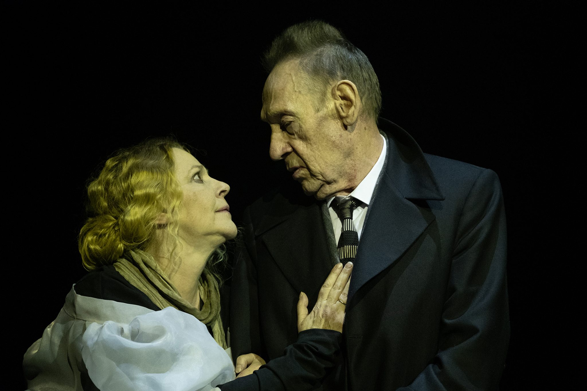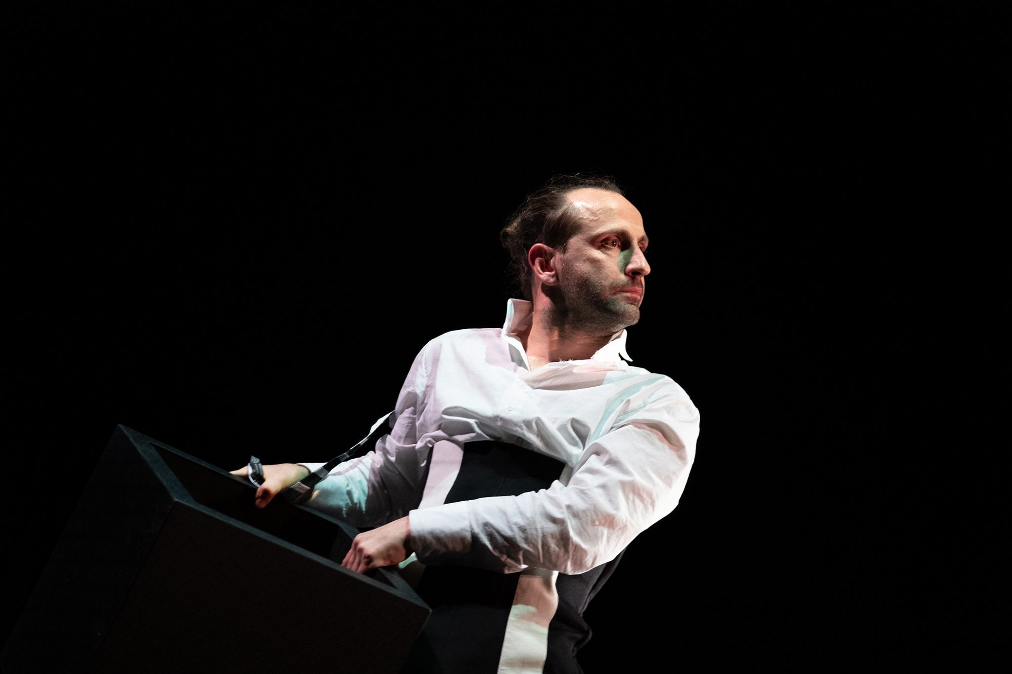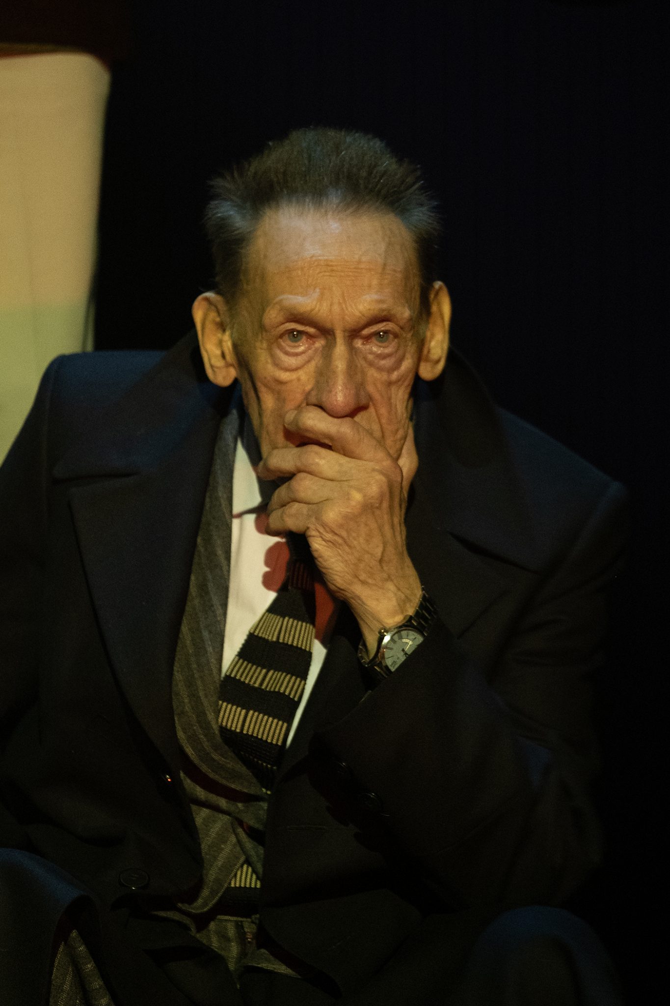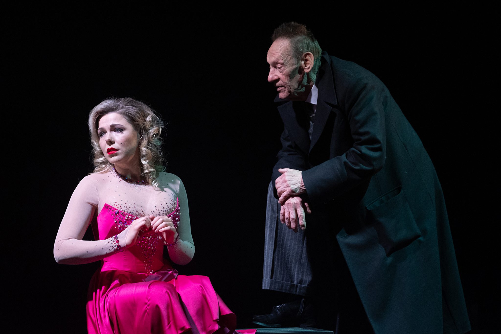 Сам актер показан здесь мятущейся душой с пустотой внутри. В начале постановки у Михаила она вызывает злость и отчаяние, что герой иллюстрирует резкими театральными жестами и громким голосом. Гротескная игра Александра Горелова была бы совершенно мимо, но в середине спектакля Чехова в возрасте начинает играть Петр Воробьев, и его герой окончательно разочаровывается в жизни. Движения становятся более плавными, голос приобретает едкую иронию. За счет контраста рождается ощущение усталости персонажа. Внутренне он не меняется, просто сил яростно махать руками уже нет.