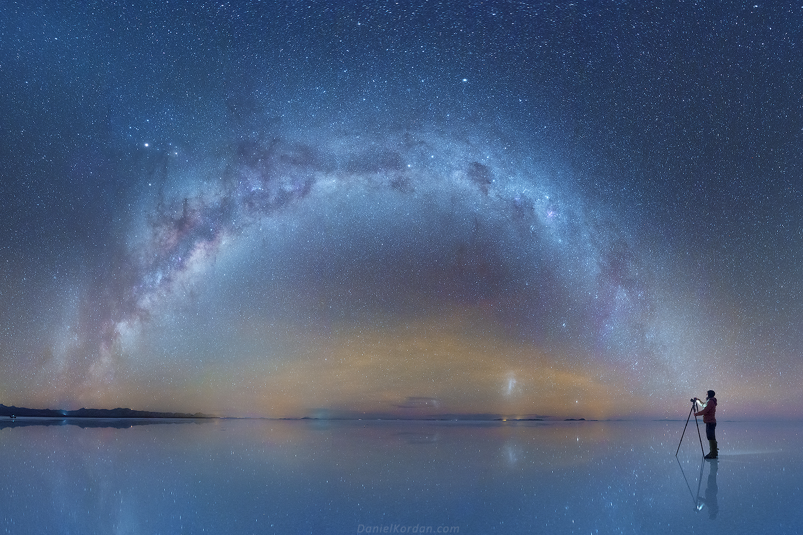 Самые свежие воспоминания сейчас — со съемок в Патагонии и Боливии. Мы фотографировали звезды на затопленном солончаке Уюни — это самый крупный солончак в мире. Обычно его затапливает в январе-феврале, а мы попали туда в мае и думали, что воды уже не увидим. Но однажды ночью нам все же удалось найти затопленный участок, и мы поехали туда снимать. Это был настоящий сюрреализм: ты стоишь на воде, а она дает идеальное отражение. Ощущение, что ты в космосе: горизонта не видно, вокруг абсолютная темнота, а вокруг — над головой, под ногами, по сторонам — звезды. Космос! Правда, соль с водой весьма опасна: в ночи найти путь очень трудно. Мы чуть было не застряли.