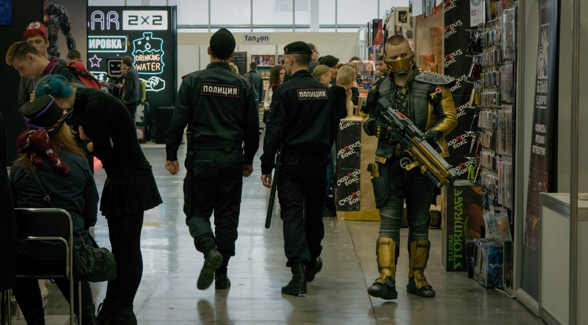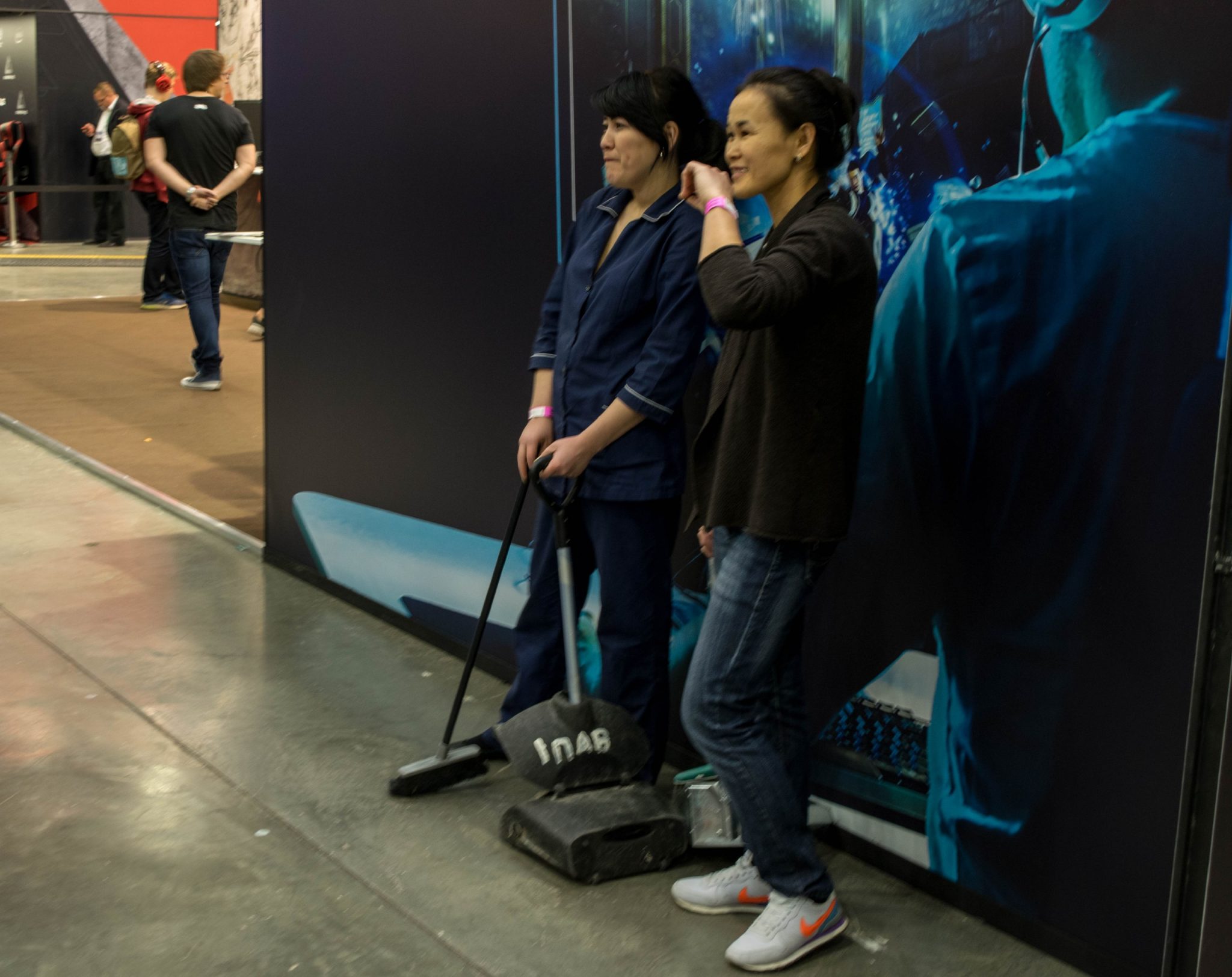 Мне запомнились уборщицы, стоявшие у стены и откровенно хохотавшие над происходящим. А еще, пожалуй, полицейские, устроившие досмотр парню, пришедшему в костюме Джоела из Last of Us.
