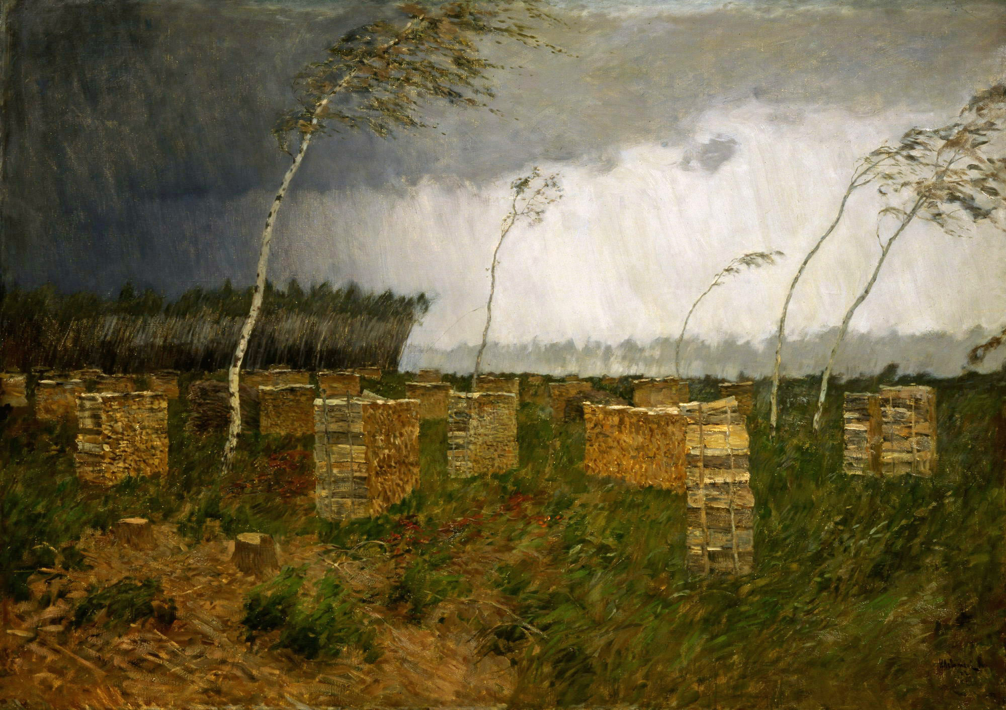 Смертельная тоска и чувство обреченности порой одолевали Левитана. Лесное кладбище, беспомощно гнущиеся под порывами сильного ветра деревья и свинцовая туманность картины «Буря. Дождь» стали олицетворением того, что творилось в душе художника в последние годы.