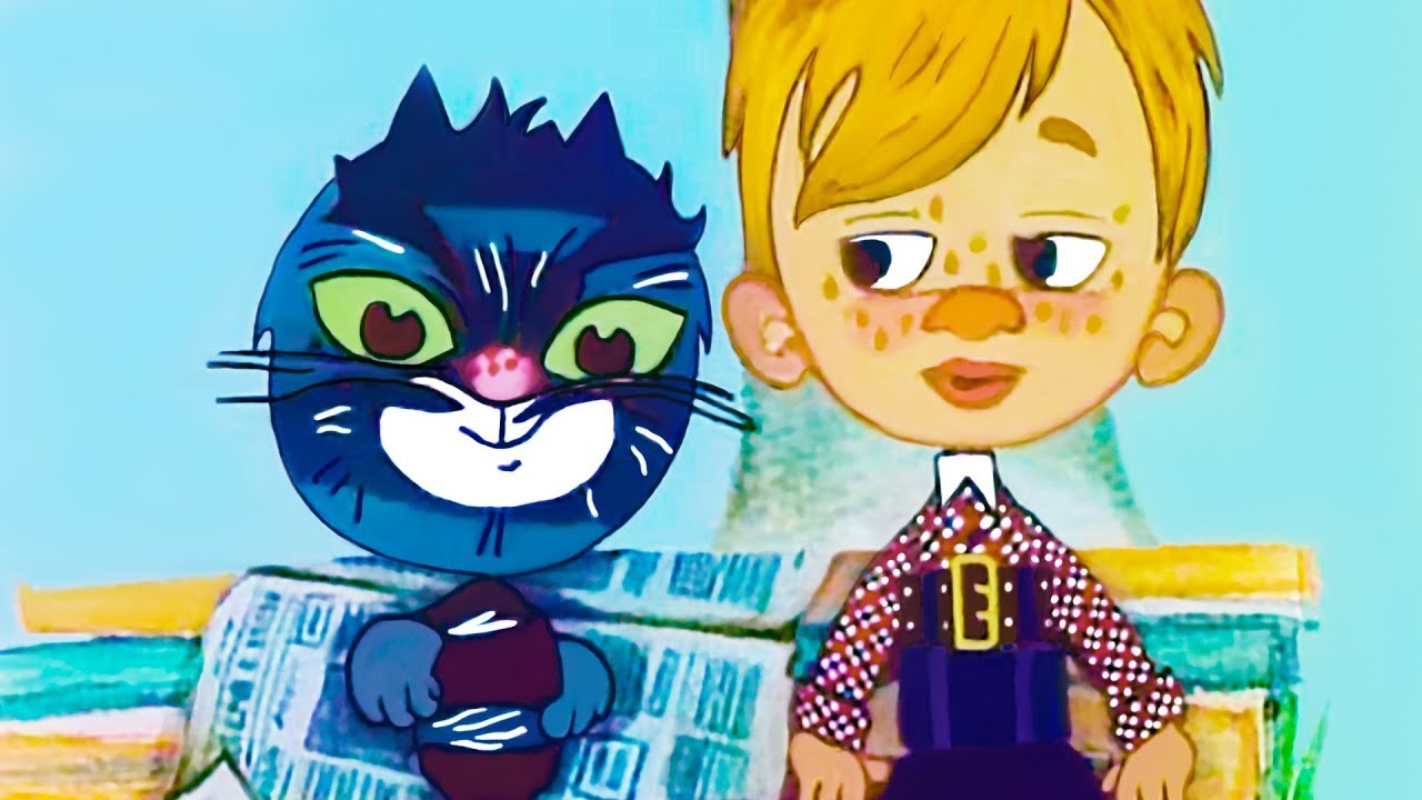 Давайте начнем с того, что выстроим всю линейку этой сказки с начала. Всего серий не ТРИ и не четыре, как все привыкли думать. Их СЕМЬ. Первая была снята в 1975 году студией «Экран». Туда входили три серии: «Матроскин и Шарик», «Митя и Мурка» и «Мама и Папа». Художником-постановщиком там был Борис Моисеев (нет-нет!! Не ТОТ!), который потом еще «Незнайку» рисовал. И выглядело это вот так: