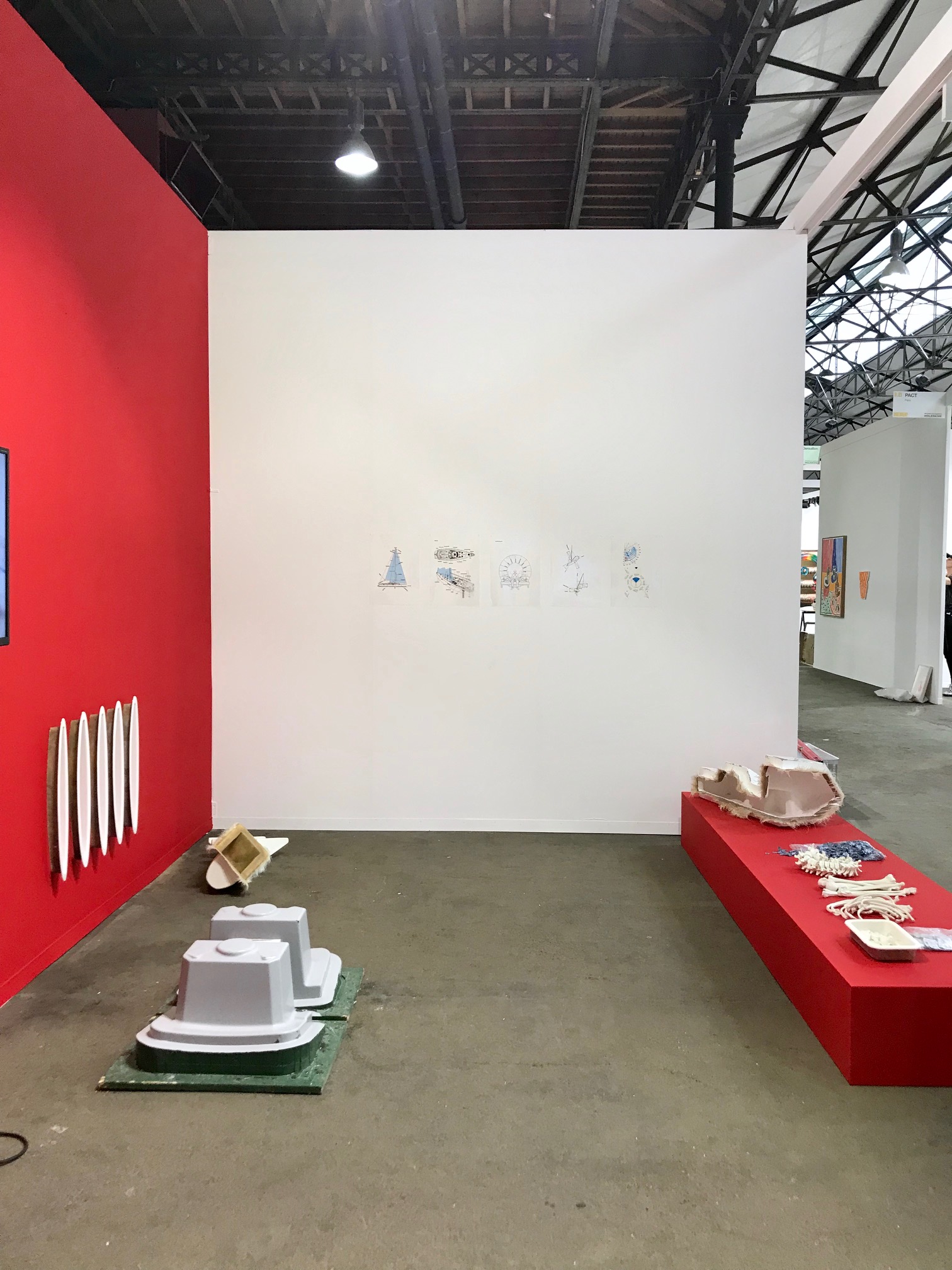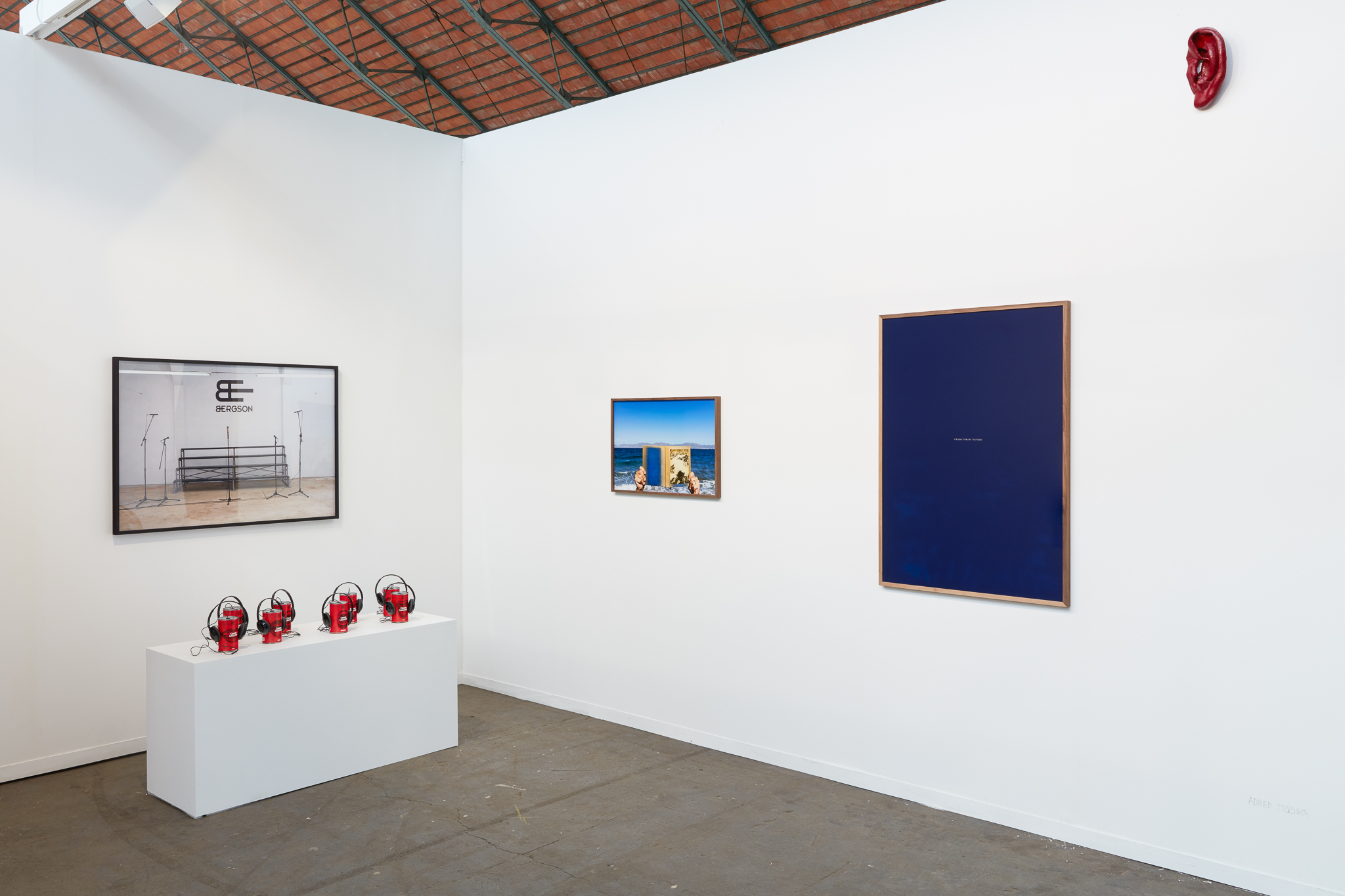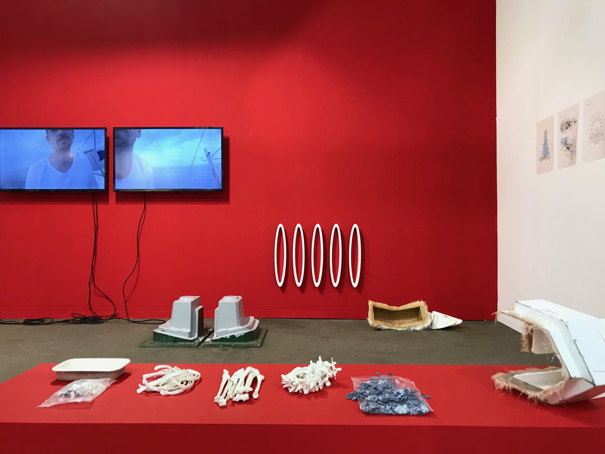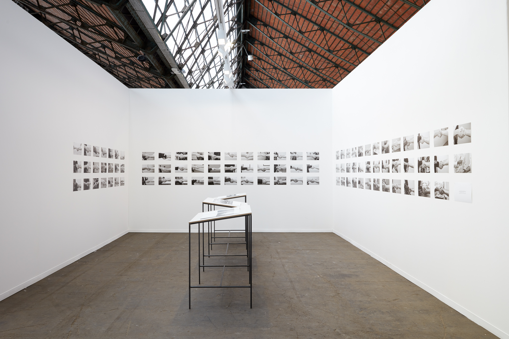 Сложно было упустить из виду стенд, внутри алых стен которого расположился многочастный соло-проект Барборы Клейнхампловой. Чешскую художницу на ярмарке представляла галерея Lucie Drdova. В целом, работы Клейнхампловой направлены на изучение особенностей поведения различных социальных групп в рамках современных политико-экономических структур, именно поэтому художница нередко прибегает к перформативным практикам. В частности её интересуют такие состояния человека, как тревога и последующие за ней явные физиологические реакции организма, например,